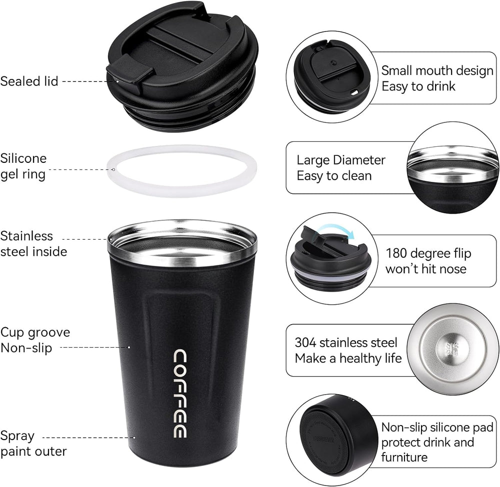 - ☕【Kaffeebecher to go】 Kaffeetasse der BPA-freie schraubdeckel verhindert zusammen mit dem silikondichtring das austreten von wasser. Die doppelwandige Vakuumisolierung besteht aus hochwertigem 304 doppellagigem Edelstahl, langlebig und verhindert