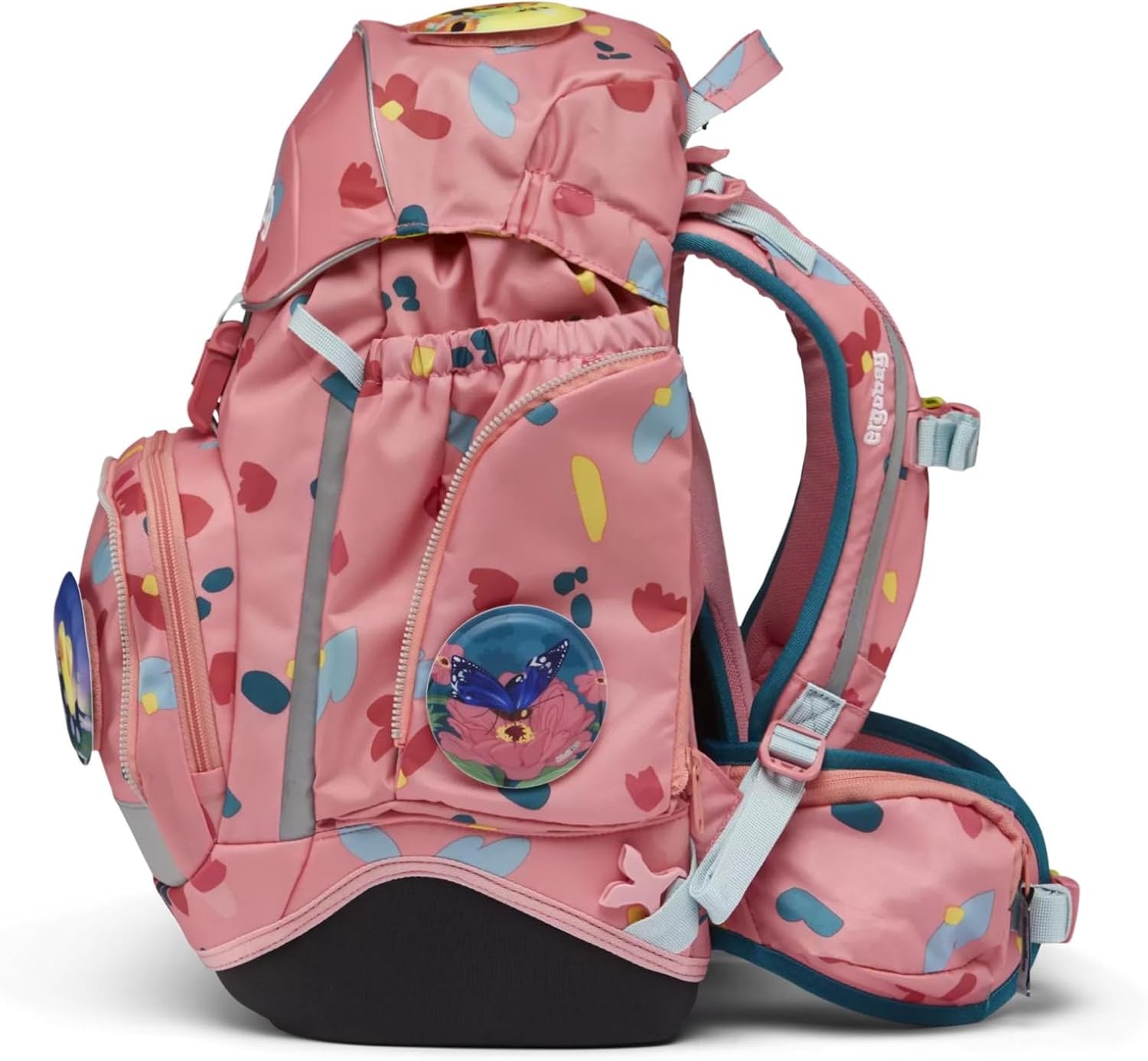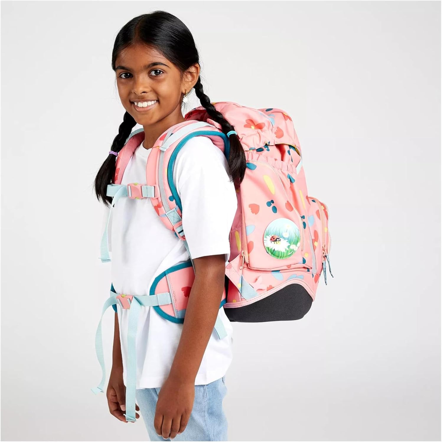 - Ergonomisch – Der Schulrucksack passt sich durch das höhenverstellbare Tragesystem an die individuelle Köpergrösse an. Die gepolsterten Beckenflossen verteilen das Gewicht gleichmässig.