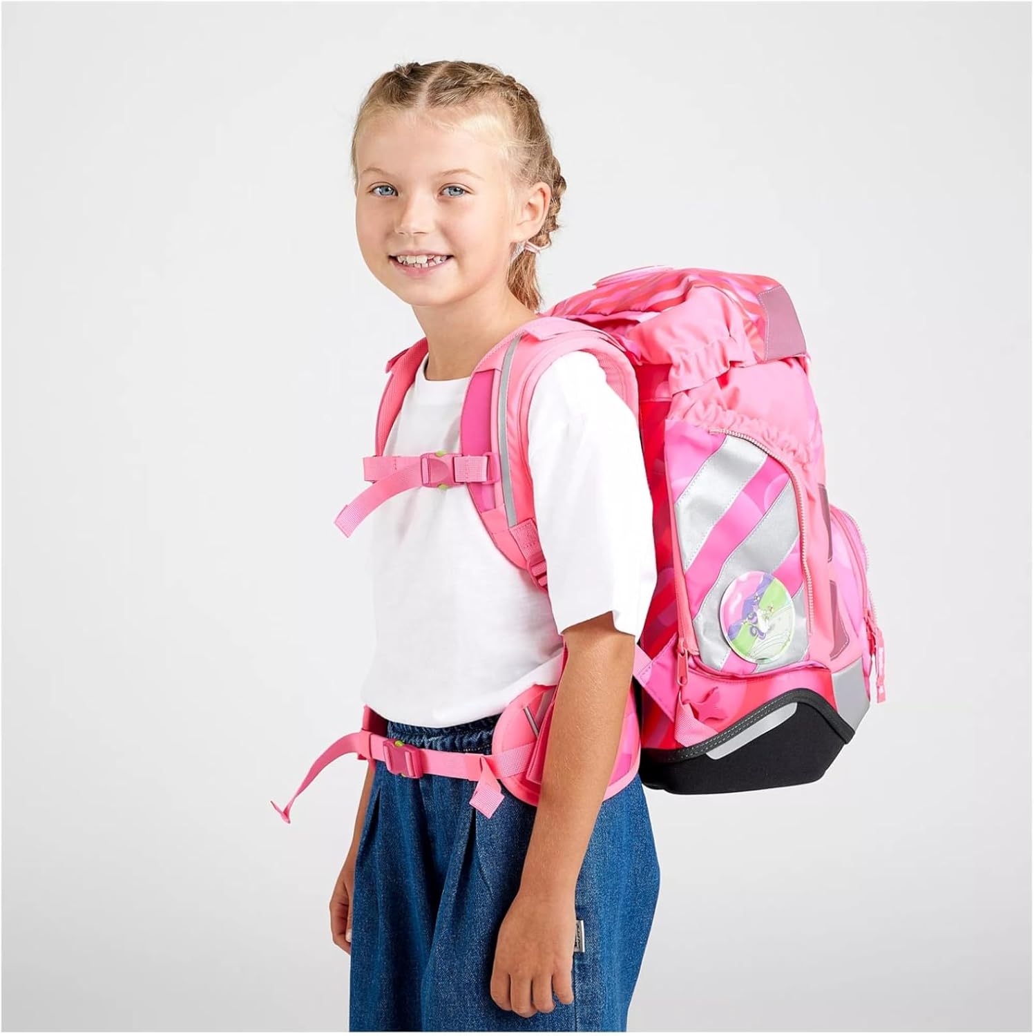 - Standfest und reflektierend – Die wasserdichte Bodenwanne macht den Schulranzen besonders stabil. Die grosszügigen Reflektoren rundherum sorgen für Sichtbarkeit von allen Seiten.