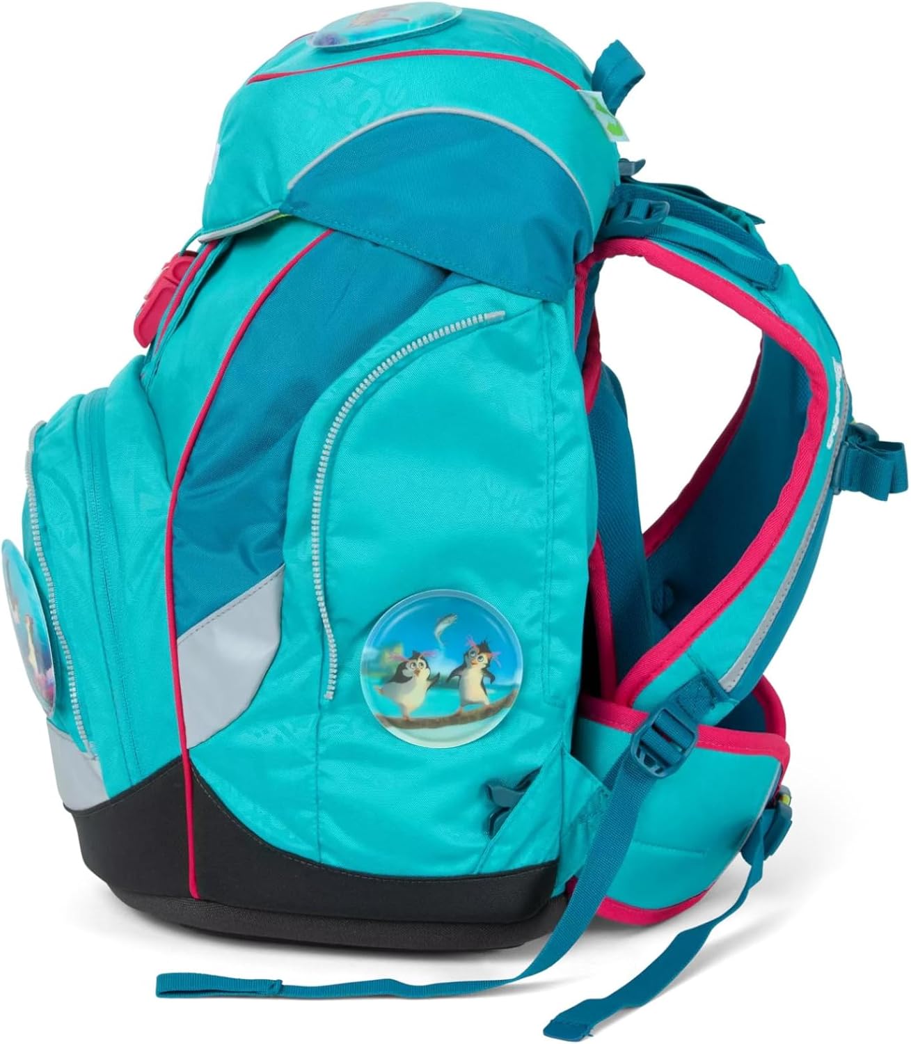 - 6-teiliges Set – Alles mit dabei: ergonomischer Schulrucksack, Sportrucksack, DIN A4 Heftebox, 5 Kletties, 22-tlg. gefülltes Federmäppchen und Schlampermäppchen. Verantwortungsvoll produziert.