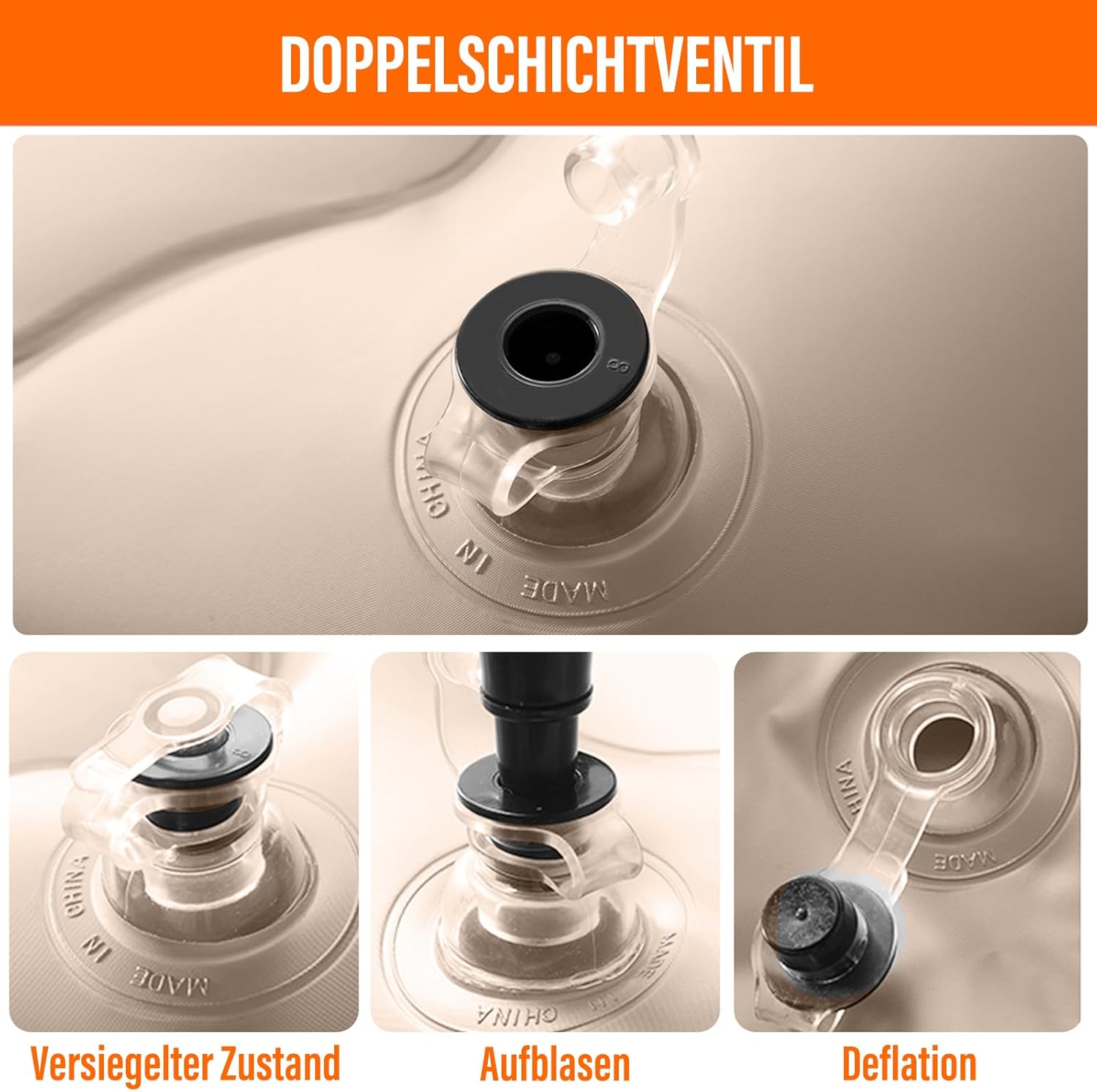 - 【Leistungsstarke Leistung】Das Doppelschichtventil kann sicherstellen, dass das Gas während des Aufblasens nur eintreten und nicht austreten kann, was die Inflationseffizienz verbessert. Das ultradicke 44UM-Material hält das Luftbett lange Zeit ohne