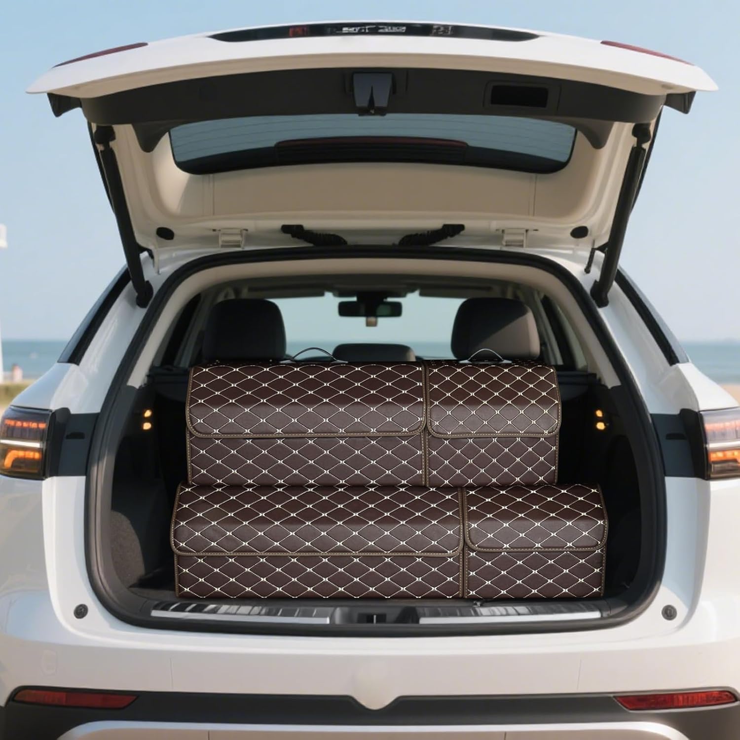Ergocar Kofferraum Organizer Luxus-PU-Leder Aufbewahrungstasche Organizer Wasserdicht Faltbar Koffer