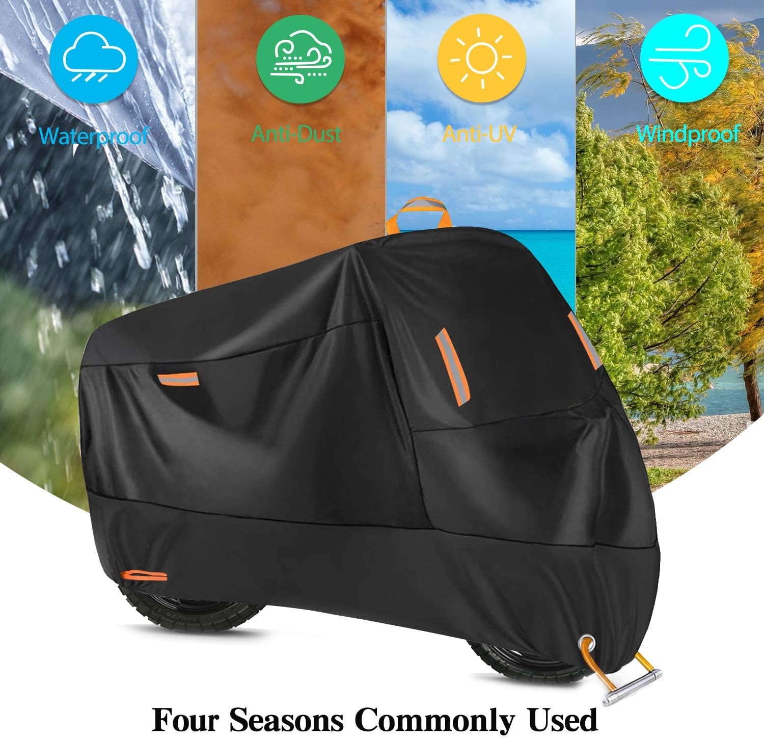 - 【Premium-Material und reflektierendes Klebebanddesign】 Die Ergocar-Motorradabdeckung besteht aus hochwertigen 300D-Polyestergeweben mit einer Silberbeschichtung im Inneren und reduziert die Schädigung durch ultraviolette Strahlen erheblich. Das ist