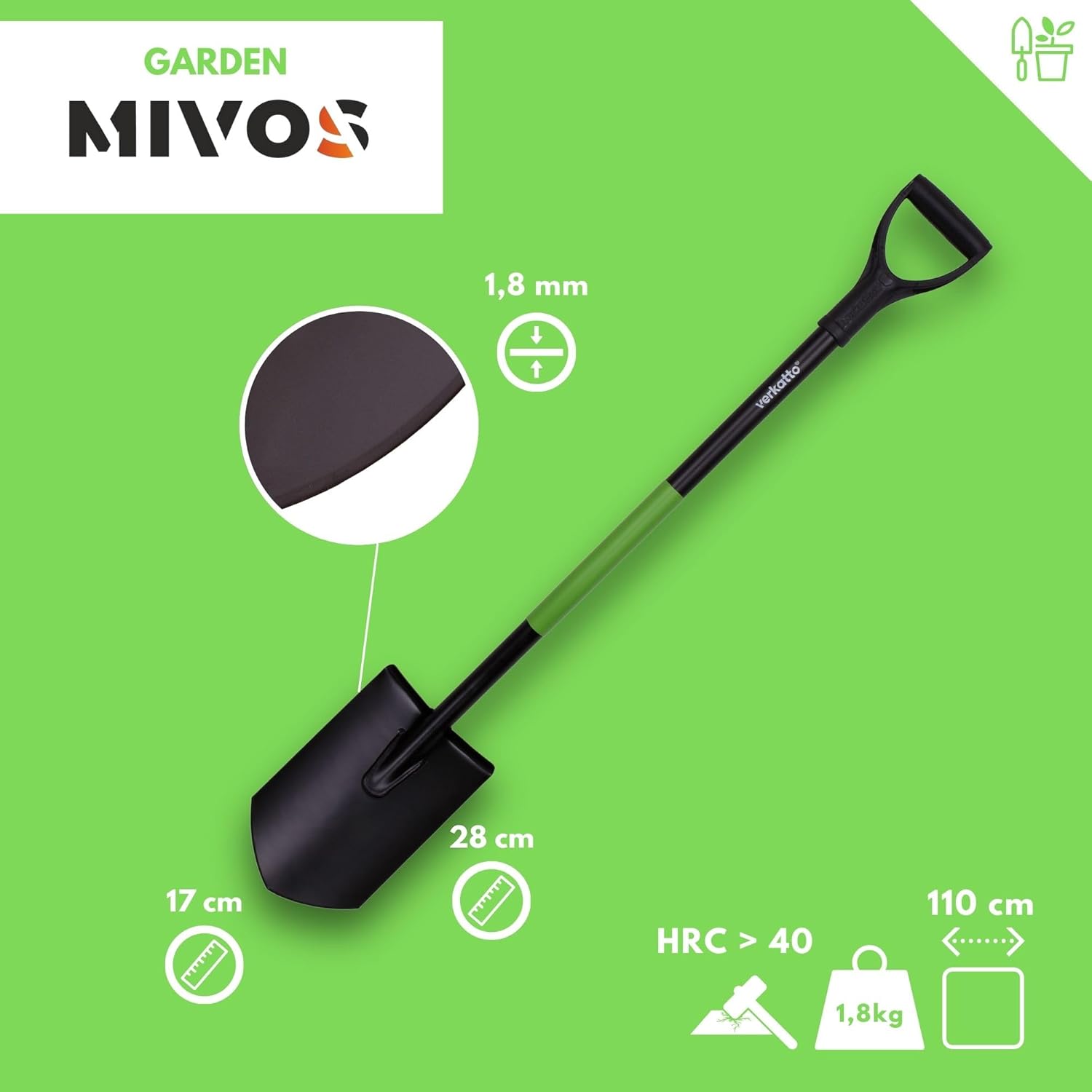 - ✅ LIEFERUNG : 1 x Ergonomischer Spitz-Gartenspaten mit rutschfestem Stiel / Länge: 110 cm / Gewicht: 1830 g / Abmessungen des Arbeitsteils: 28 x 17 cm / Dicke des Arbeitsteils: 1,8 mm / Material: gehärteter Stahl / HRC: 40-45 / Farbe : schwarz und