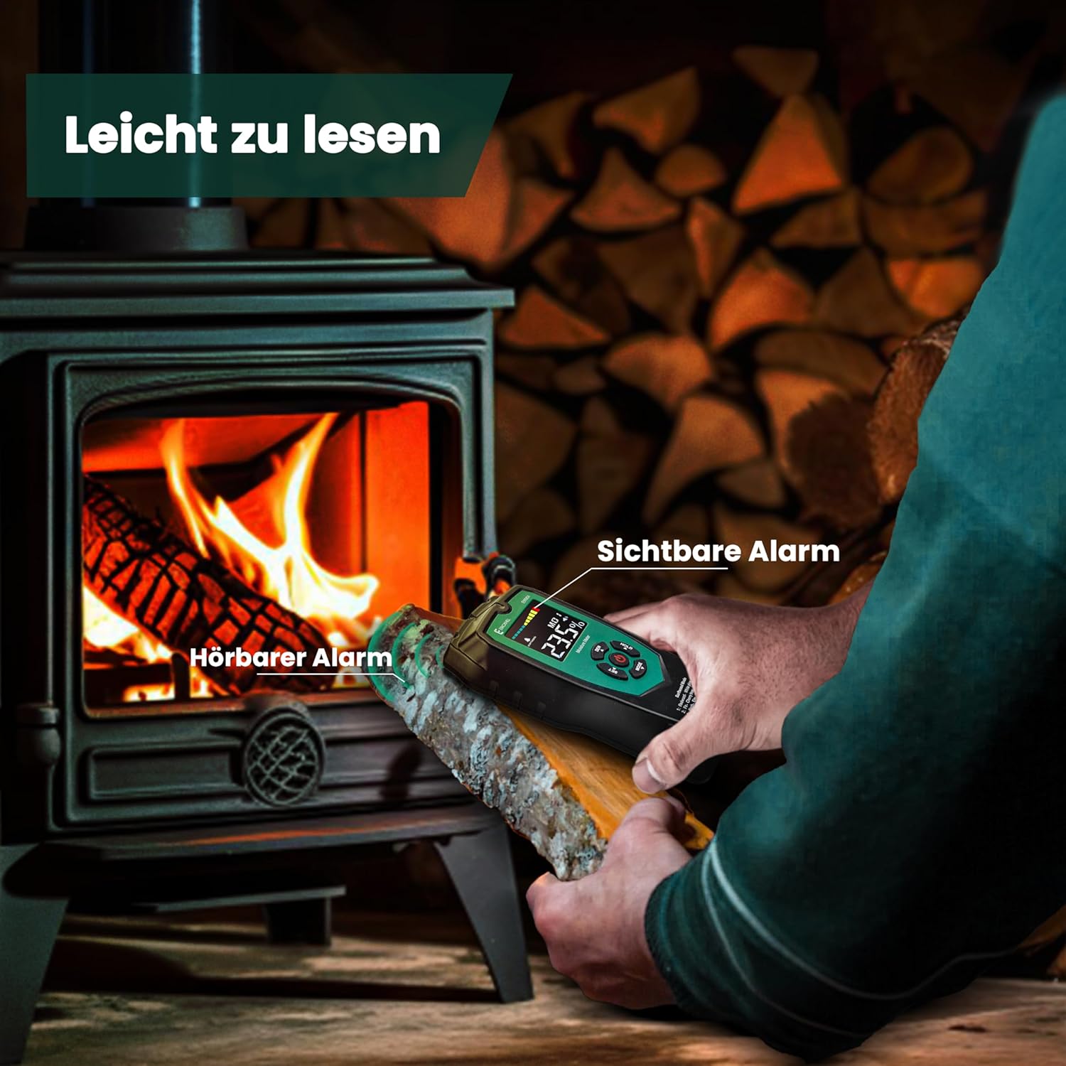 - Feuchtigkeitsalarm: Diese Funktion hilft, Schimmel im Holz zu erkennen, sodass Sie Probleme frühzeitig erkennen und Massnahmen ergreifen können.