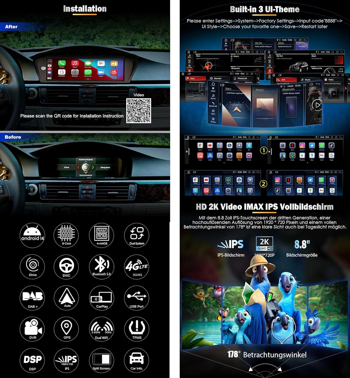• ✪【Originalsystemfunktionen Beibehalten】Original-iDrive-System beibehalten, einfacher Zugriff auf alle Funktionen (wird nach der APK-Installation nicht unterstützt); behält das ursprüngliche HiFi-Soundsystem bei; behält die ursprüngliche