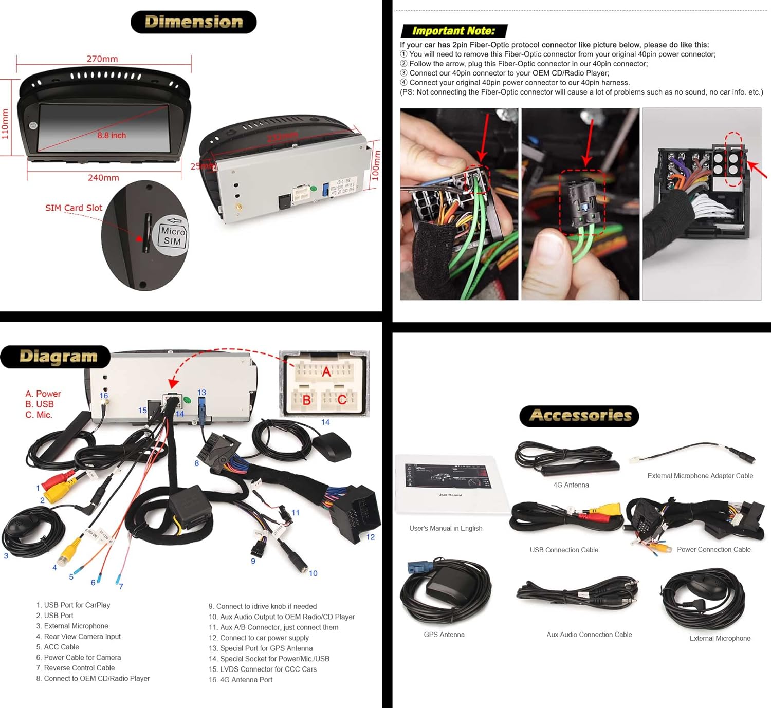 • ✪【Kompatibilität】Autoradio passend für: BMW 3er E90 E91 E92 E93(2009-2012) CIC-System mit OEM 8.8" Bildschirm; BMW 5er E60 E61 E63 E64(2009-2010) CIC-System mit OEM 6.5"/8" Bildschirm, bitte bestätigen Sie, dass das System Ihres Autos CIC ist.