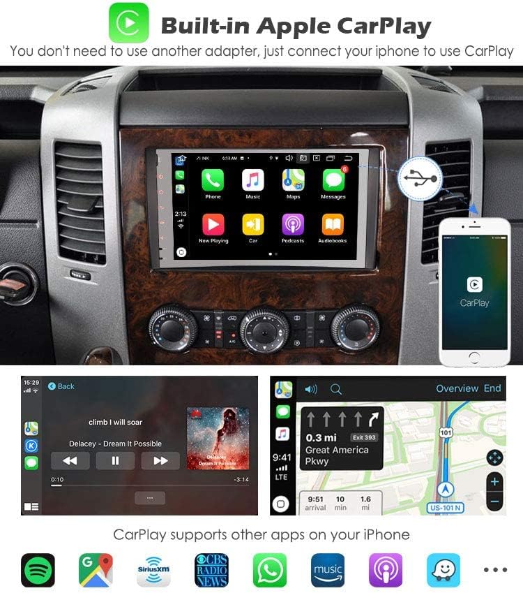 - đ ăCarPlay & DSP & BluetoothăIntegriertes Apple CarPlay-Modul, unterstĂŒtzt iPhone iOS 7.1 und höhere Version zur Verwendung der neuesten CarPlay-Funktion.Integrierter DSP-VerstĂ€rker System, kann den perfekten Soundeffekt in Ihr Auto bringen.