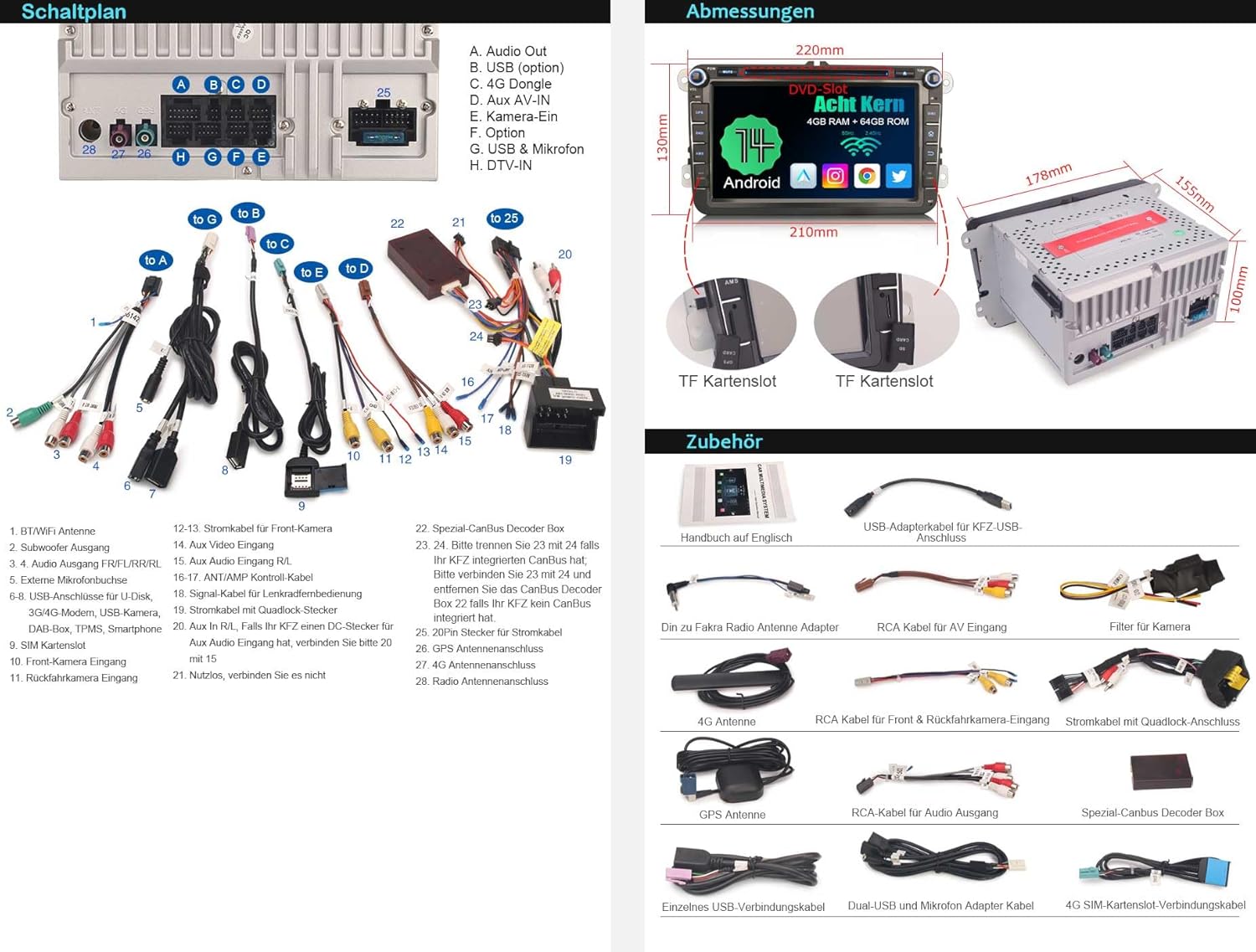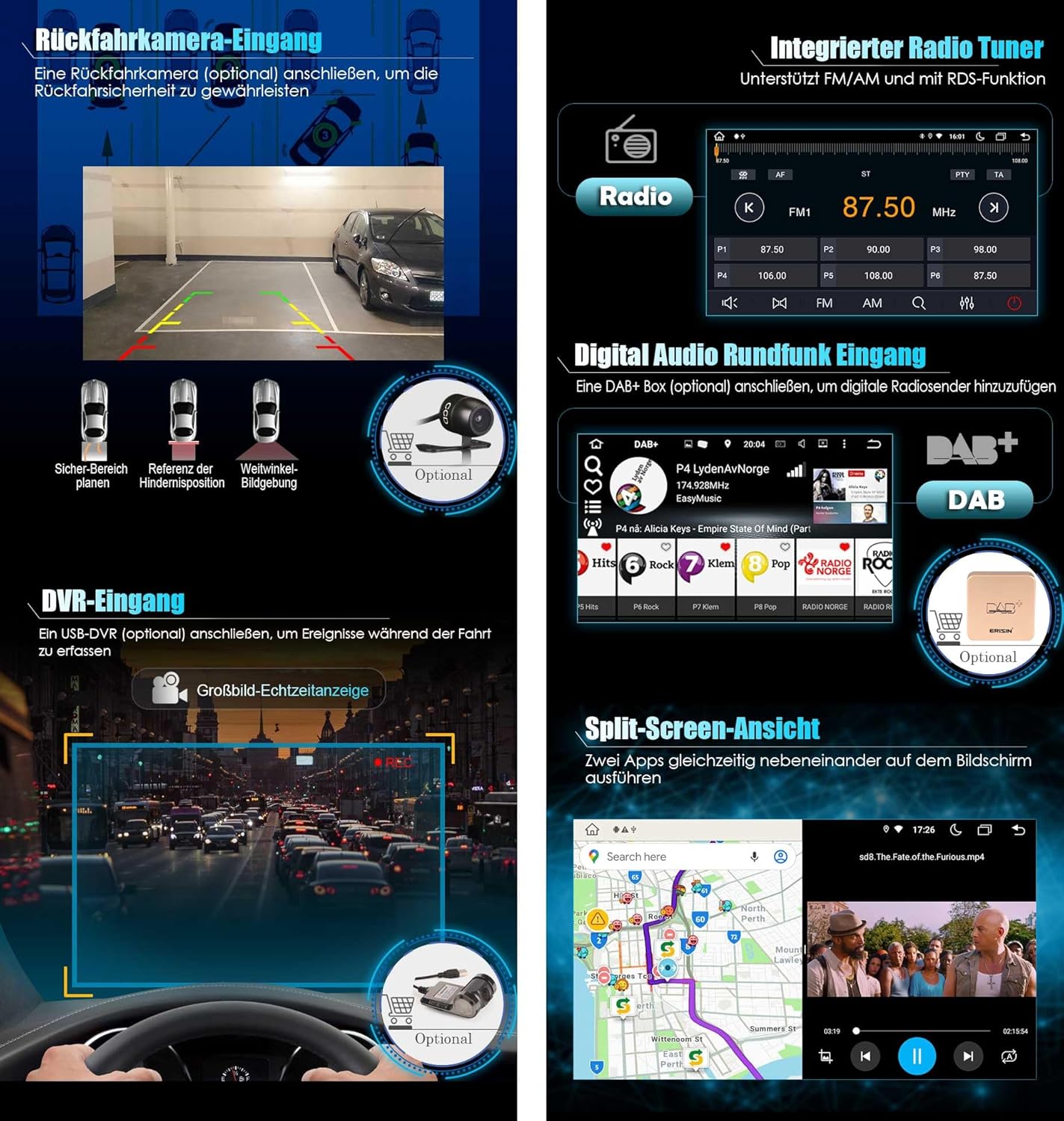- ✪【Multifunktionen】Integriertes Bluetooth, kann Ihre Hände befreien und Ihr Fahren sicherer machen; Unterstützung Lenkradsteuerung, können Sie diese Funktion verwenden, um Ihre Musik oder Lautstärke im Auto zu steuern; Unterstützung Torque Pro