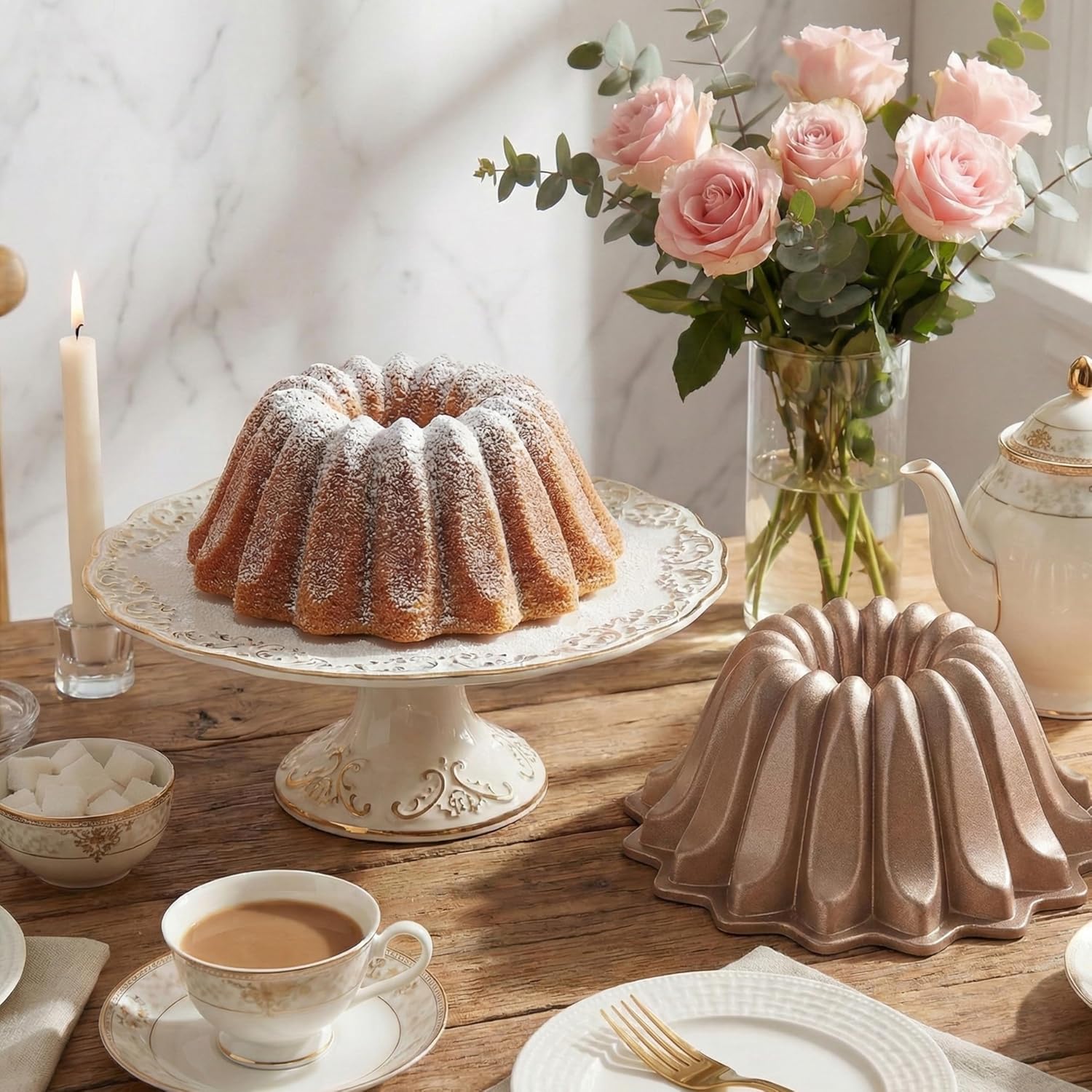 - GLEICHMÄSSIGES BACKERGEBNIS: Das Design mit zentraler Öffnung (Savarin-Form) ermöglicht schnelleres und gleichmässigeres Backen. Gussaluminium sorgt für eine homogene Wärmeverteilung bis zum Rand.