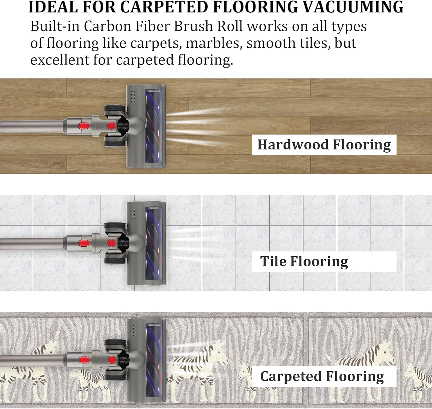 - 【Für die Meisten Bodenarten】Dieser Reinigen Kopf funktioniert hervorragend auf vielen Arten von Böden, wie Teppichen, Murmeln, glatten Fliesen, aber speziell für den Einsatz auf Teppichböden. Es kann den Staub auf dem Boden schneller und effizienter absaugen und Ihr Haus sauber halten.