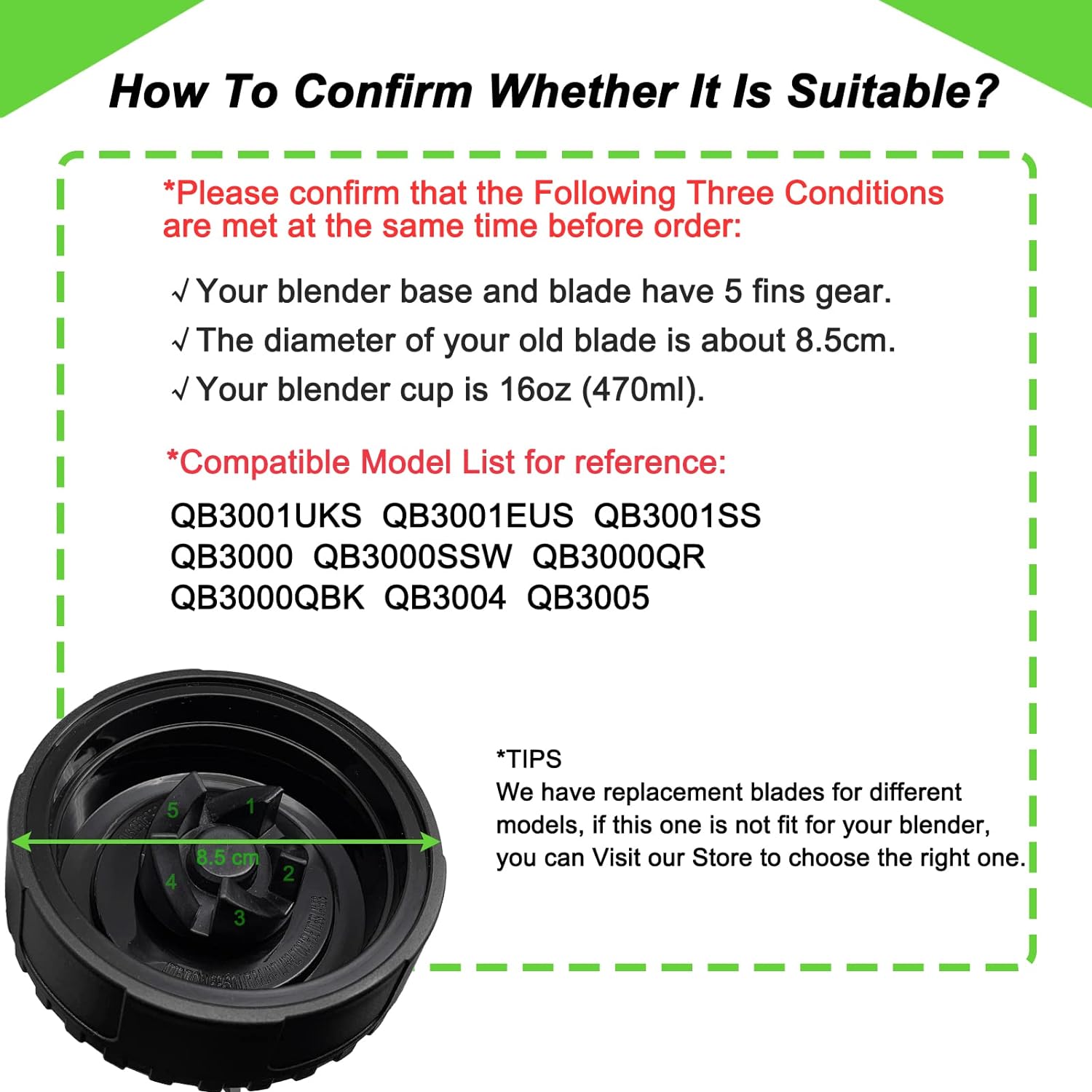 - 【Kompatibilität】Ninja Smoothie Maker 700 Watt QB3001EUS, QB3000, QB3000SSW, QB3000QR, QB3000QBK, QB3001SS, QB3004, QB3005. Bitte überprüfen Sie alle Bilder des Produkts, um sicherzustellen, dass Sie die richtige Klinge für Ihren Mixer kaufen.