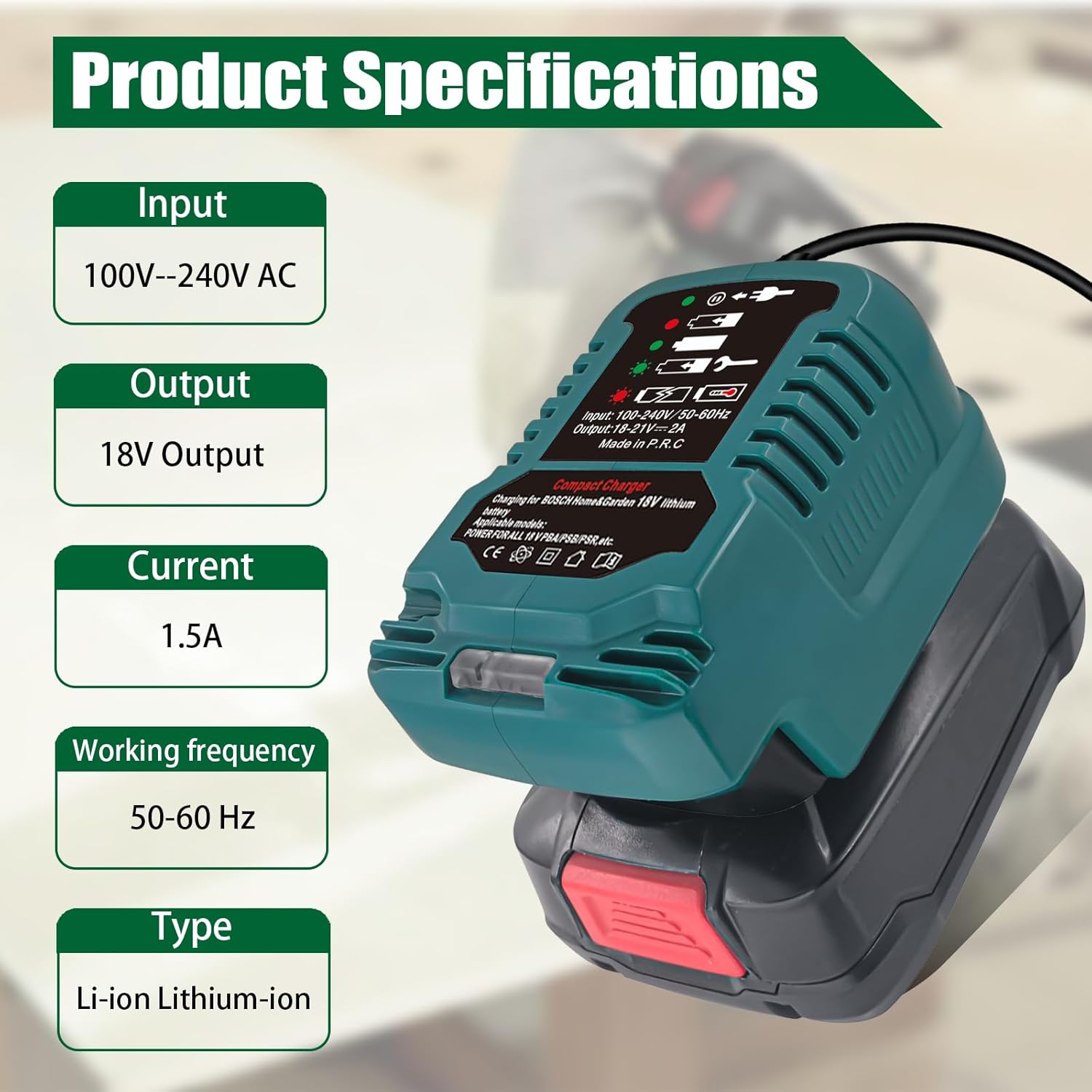 - 🚀【für Bosch PBA 18V Mini-Ladegerät】Ladeeingang: 100 ~ 240V, 50-60Hz | Ausgang: 18V | Ladestrom: 2A | | Ladestatus: mit LED-Lampenanzeige (❗ Passen Sie nicht 14V Akku.)