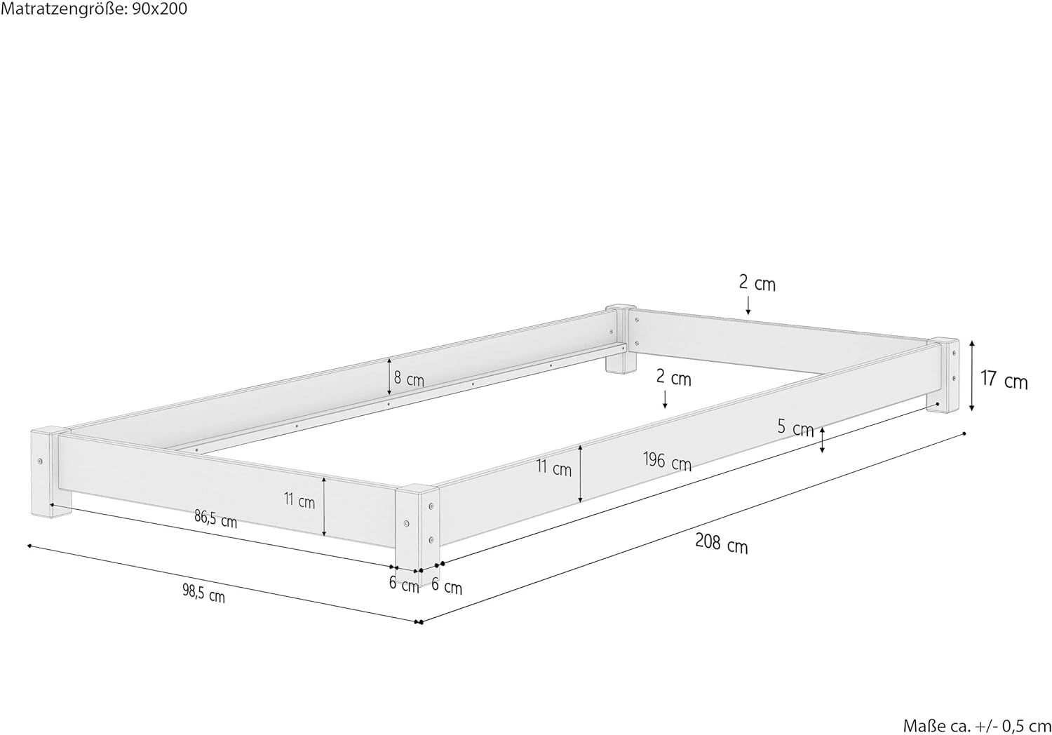 Erst-Holz Niederflurbett Futonbett Einzelbett Bodenbett 90x200 Kiefer massiv wählbares Zubehör V-60.