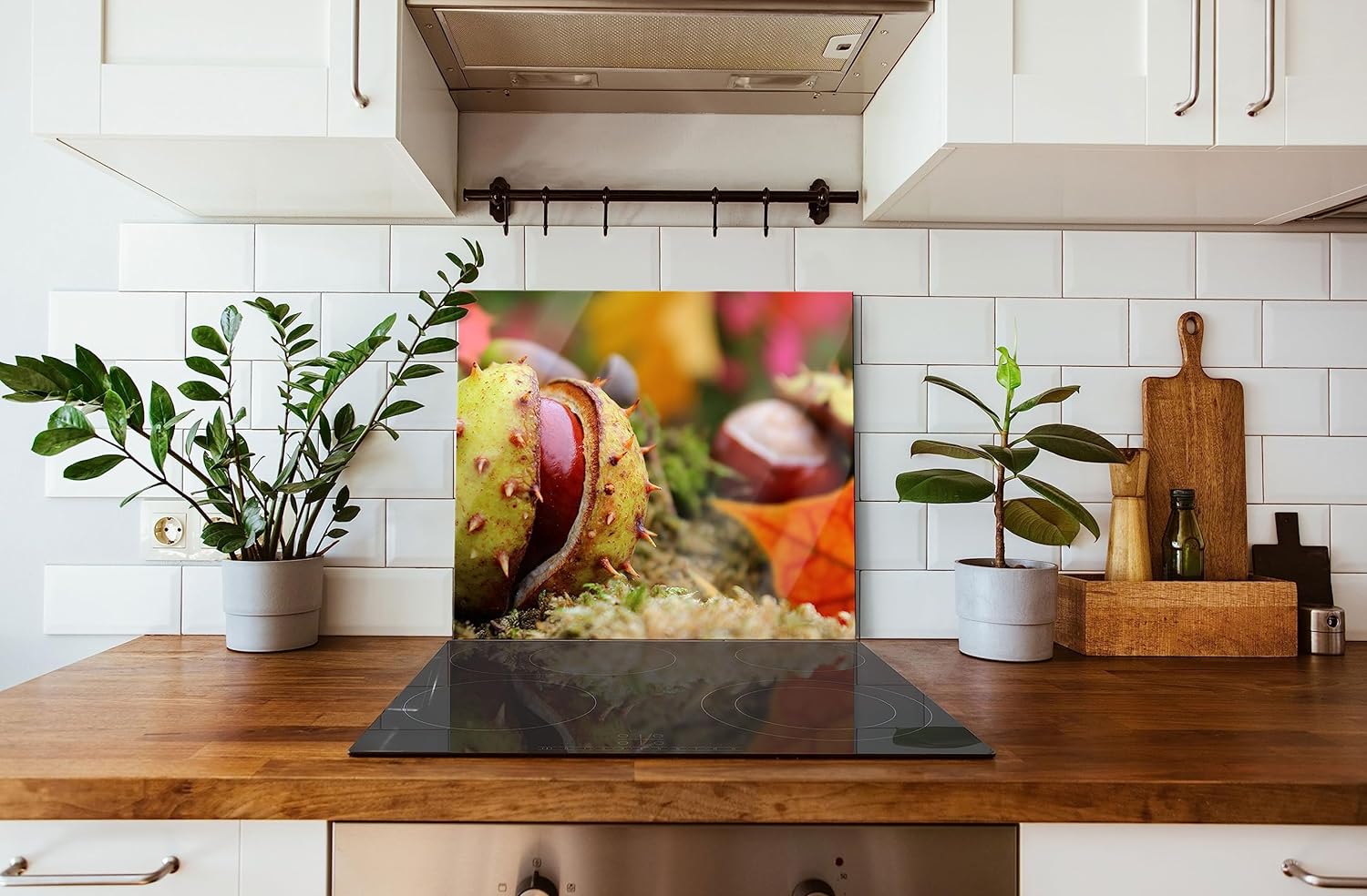 Erste Kastanie öffnet sich Herdabdeckplatte & Spritzschutz aus Echtglas | Für Herd-Kochfelder | 60x5