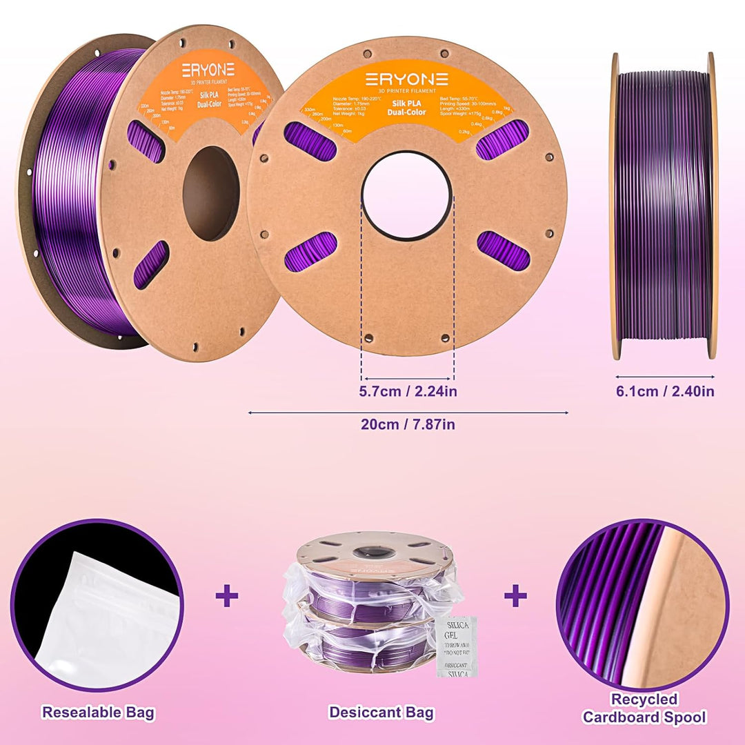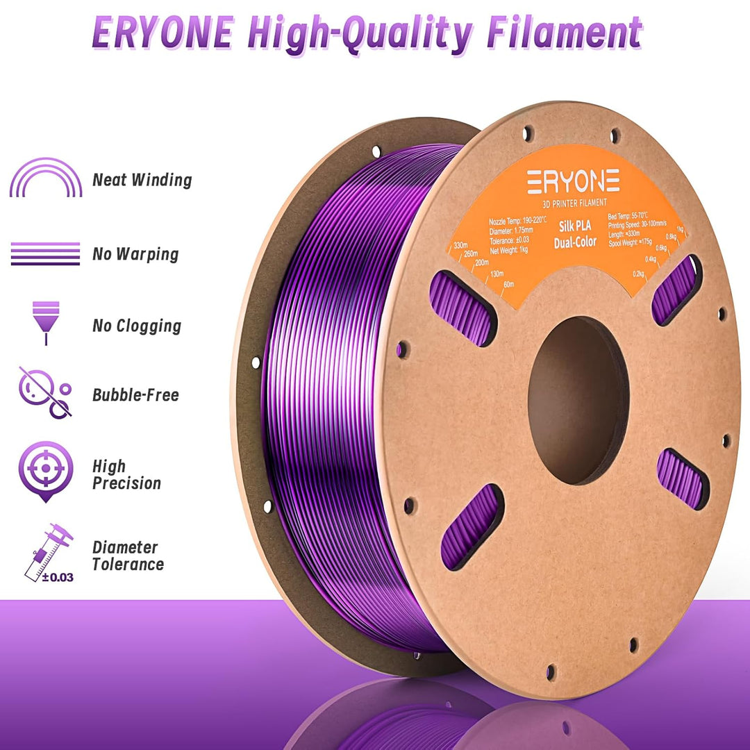 - 【Silk Dichromatic Filament】ERYONE Dual Color Silk Filament besteht aus zwei einzelnen Farben, extruded in one filament strand.You can change the visible color by rotating the color-blending filament to different orientations.