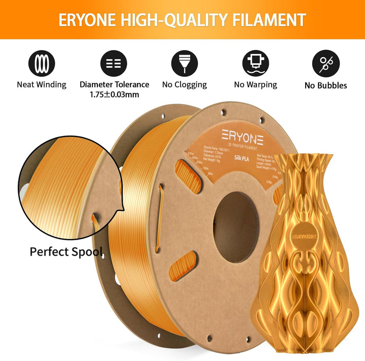 - 1. Seidiger Faden sorgt für Augen-Pop-Glanzdruck: Hervorragende Seidenveredelung mit Eryone Silk Filament PLA auf jeden Fall für ein Augen-Pop-Ergebnis! Ideal für Kunst- und Handwerksprojekte, Vasen und andere 3D-Druckobjekte, die von einem
