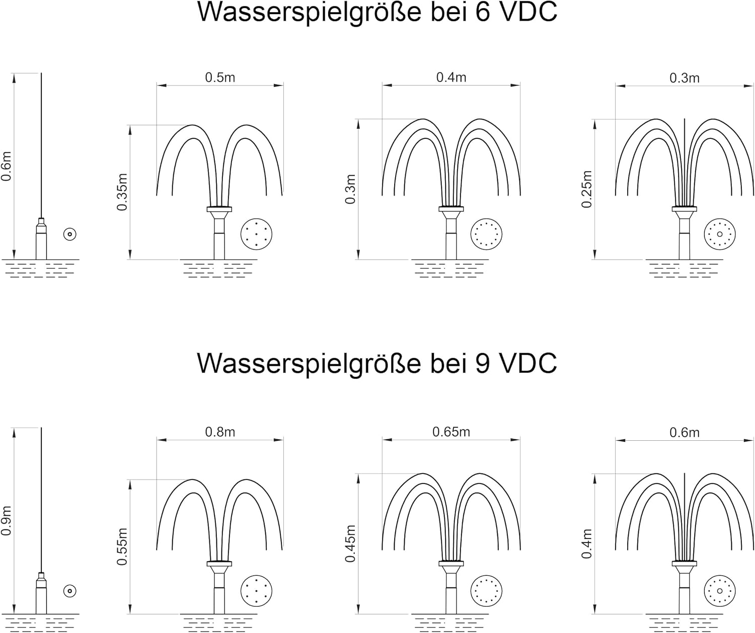 - ✅ 6-9 V/DC BETRIEBSSPANNUNG | Die Teichpumpe kann alternativ an geeigneten Spannungsquellen (6-9 V DC) auch einzeln betrieben werden.
