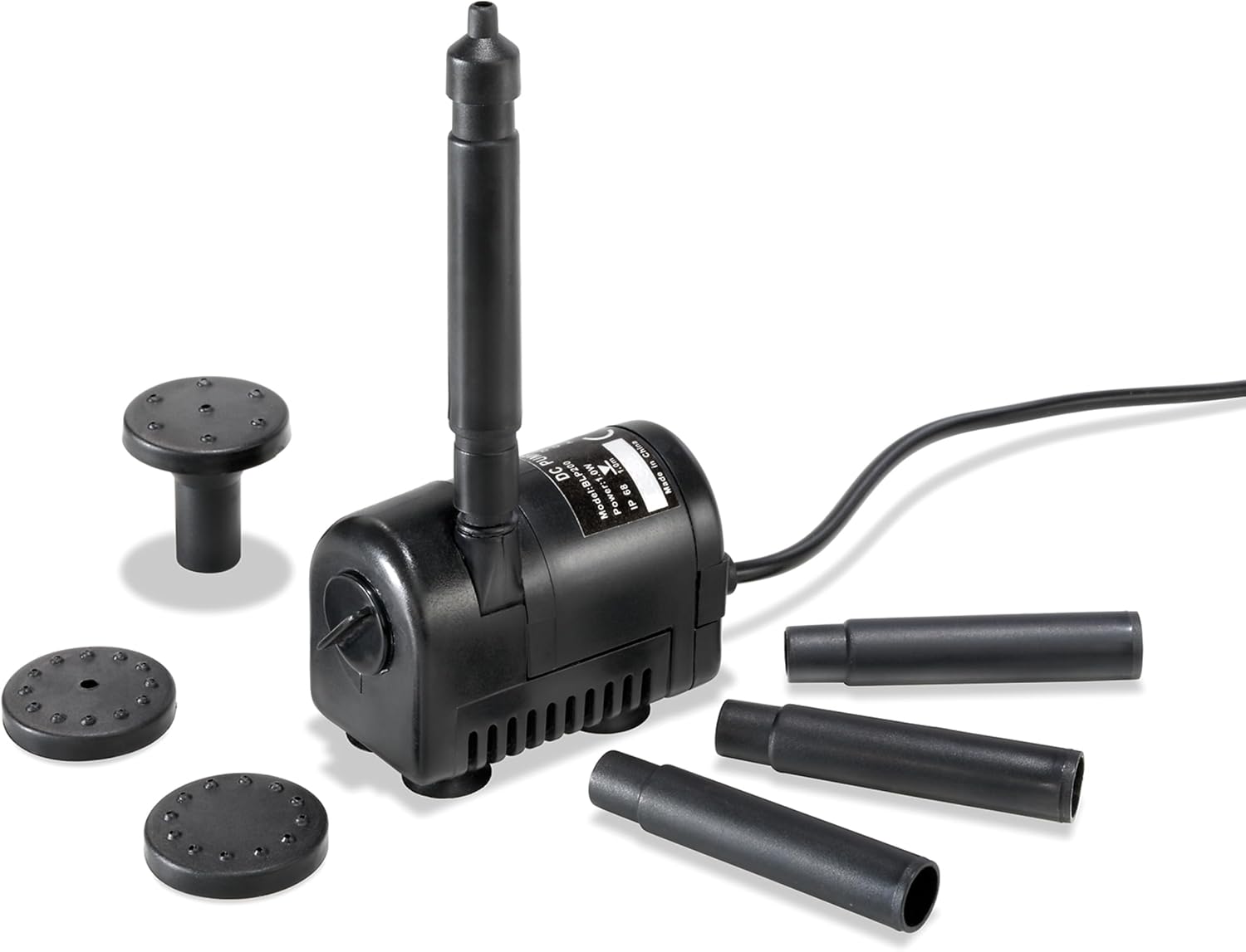 - ✅ TEICHPUMPE WASSERSPIEL | Förderhöhe: max 1,1m, Förderleistung: max 230 l/h, Schutzart: IP68, Trockenlauf: NEIN, Einsatztiefe: max 1 Meter, Schlauchanschluss: für Schläuche mit 8 oder 10 mm Innendurchmesser geeignet. Zubehör-Pumpe.