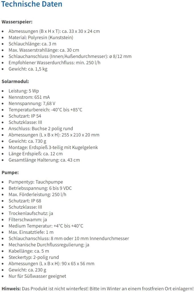 - ✅ FUNKTIONELL | Stufenlos regelbarer Durchflussregler an der Wasserpumpe. Teichpumpe mit Trockenlauf- und Überlastschutz, auswaschbarer Filter-Einsatz. Schlauchlänge von Dekofigur zur Gartenteichpumpe 3m. Dekorativer Brunnen. Wetterfest.
