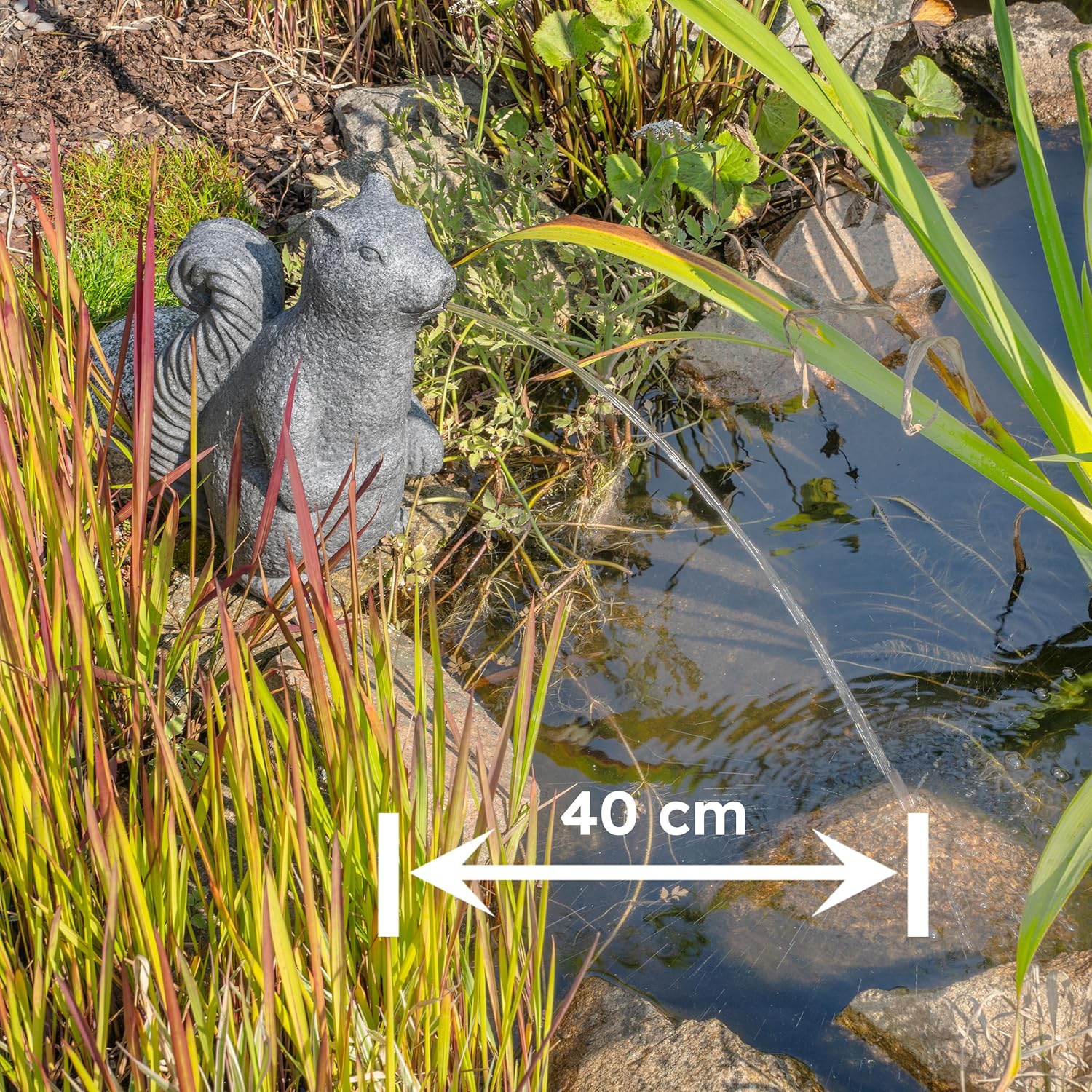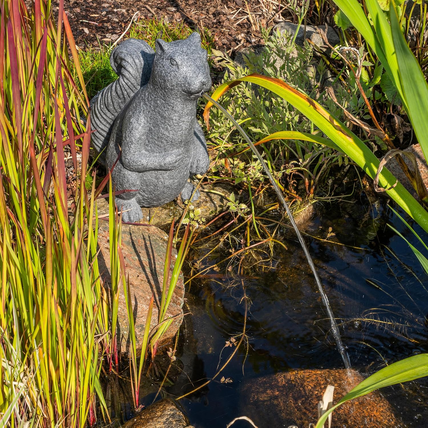 - [Wasserspeier Komplettset Eichhörnchen] Bezauberndes Wasserspeierset Eichhörnchen sitzend mit leistungsstarkem Solar-Pumpensystem, 5Wp Solarmodul, Der Betrieb erfolgt direkt bei Sonnenschein auf das Solarmodul, Farbe steingrau, Material Polyresin.