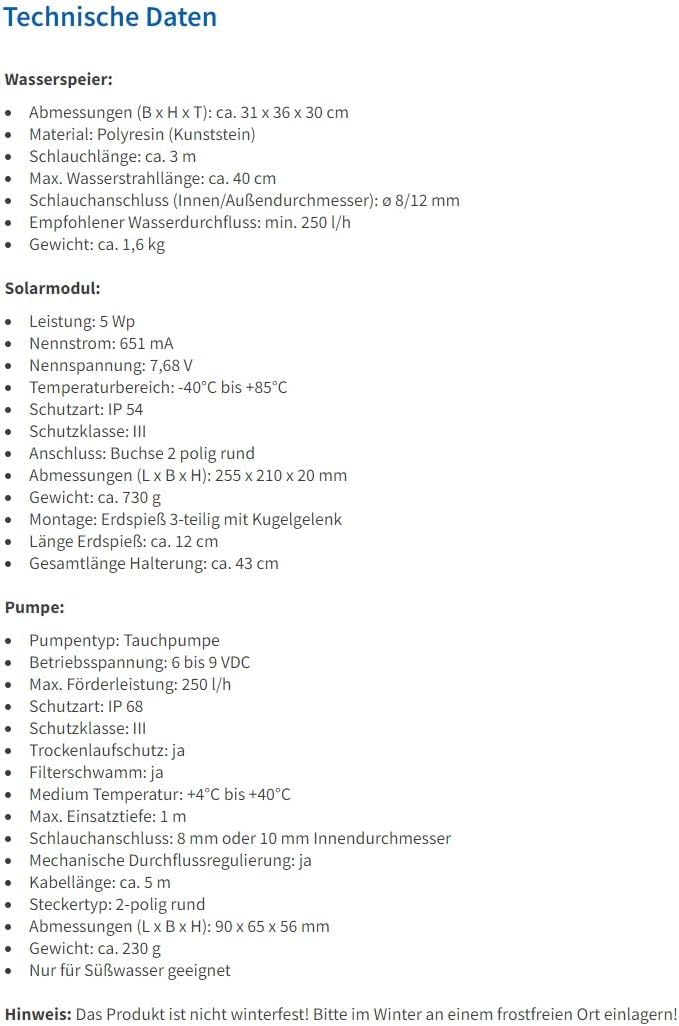 - ✅ FUNKTIONELL | Stufenlos regelbarer Durchflussregler an der Wasserpumpe. Teichpumpe mit Trockenlauf- und Überlastschutz, auswaschbarer Filter-Einsatz. Schlauchlänge von Dekofigur zur Gartenteichpumpe 3m. Dekorativer Brunnen. Wetterfest.