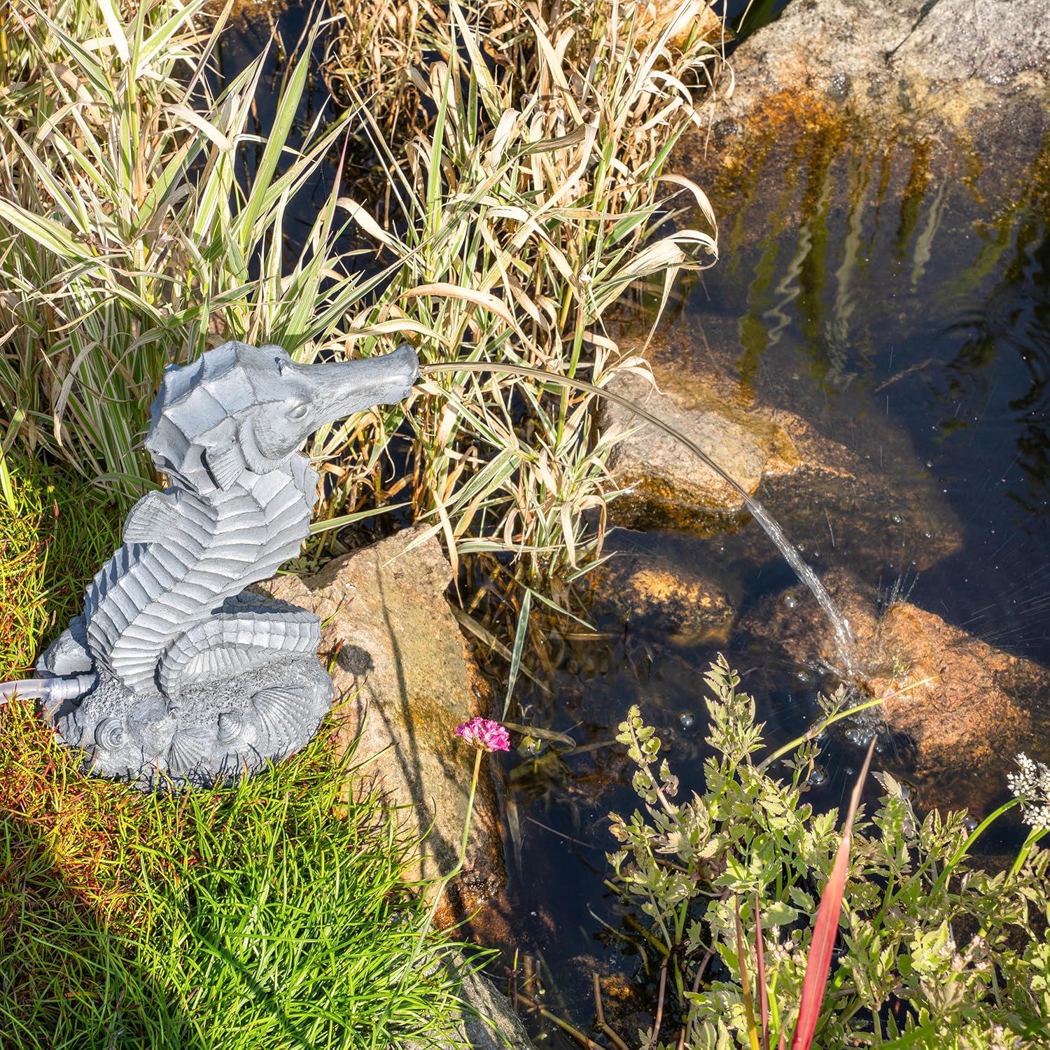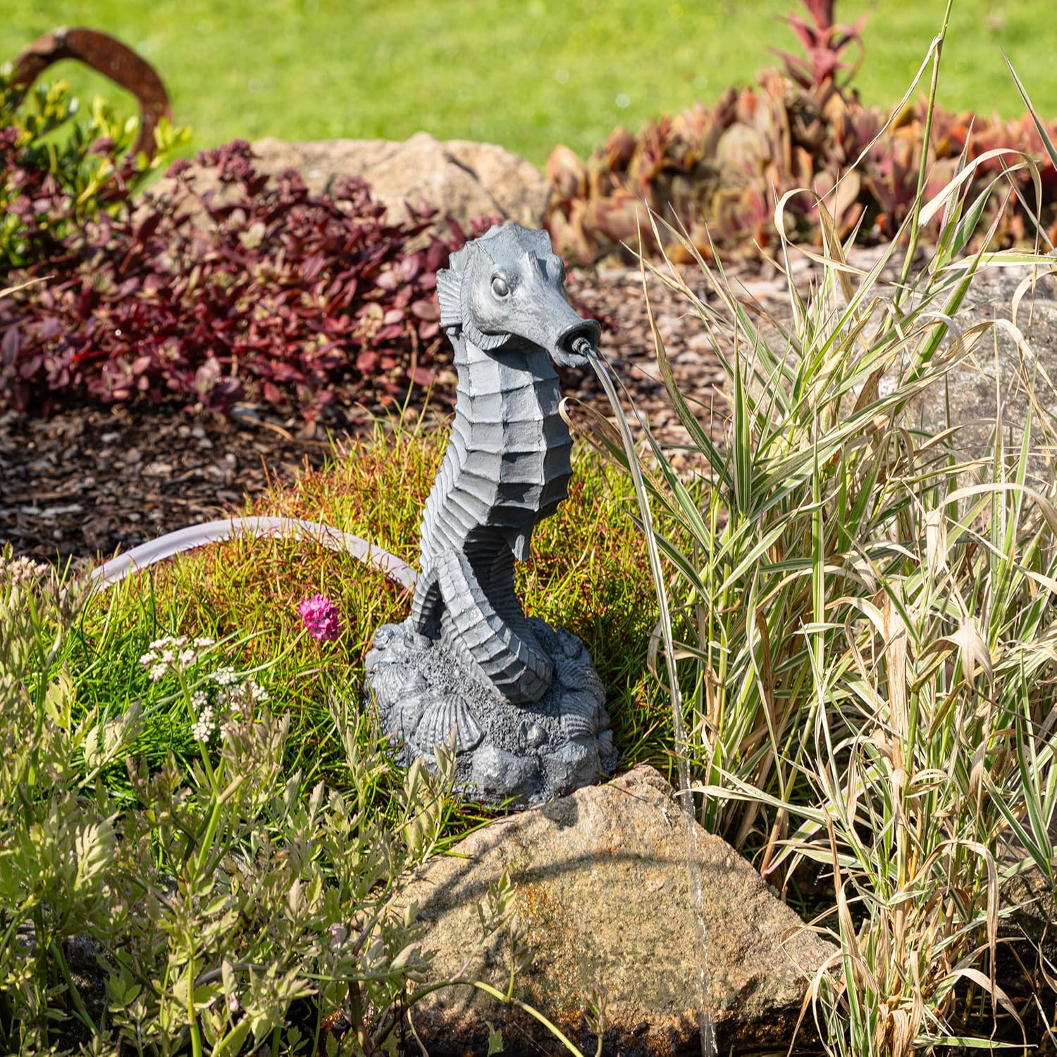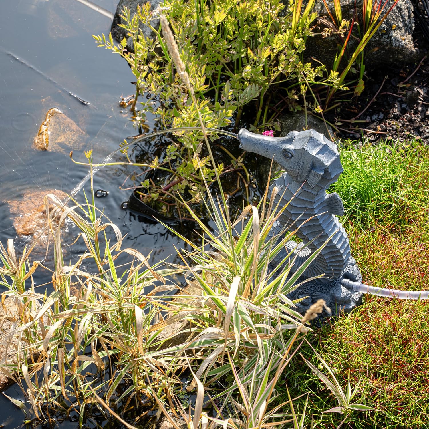 - [Wasserspeier-Set Seepferdchen Ida] Im Lieferumfang enthalten ist ein leistungsstarkes Solar-Pumpensystem, 5 Wp Solarmodul integrierte Solarpumpe, Der Betrieb erfolgt direkt bei Sonnenschein auf das Solarmodul, Optik Alt-Kupfer, Material Polyresin.
