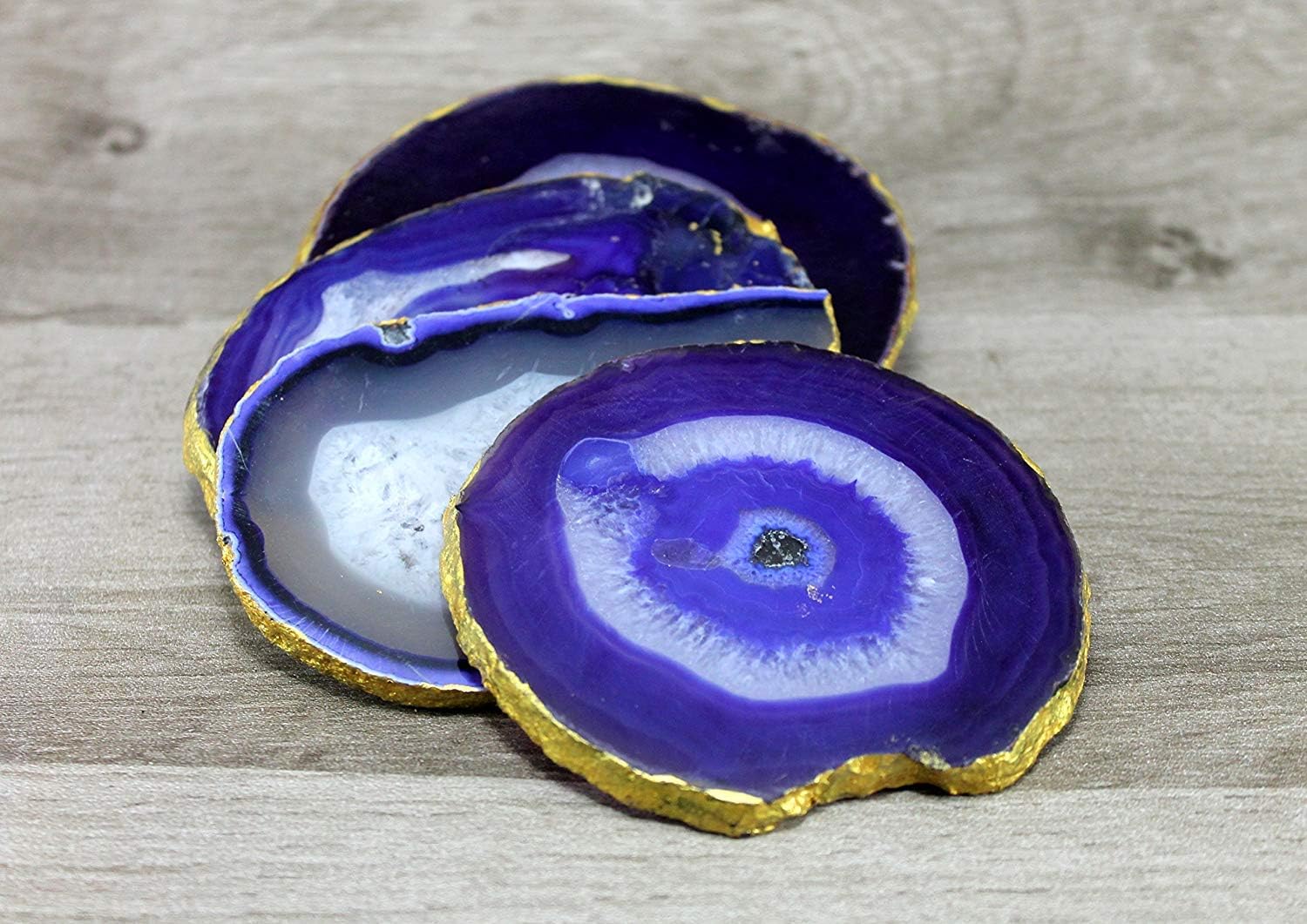 - Diese Untersetzer sind mit natürlichen, rauen Kanten aus Achatsteinen versehen. Wir haben auch Achat-Untersetzer im Angebot, bei denen die Kanten mit reinem Messing (kein Goldglanz) beschichtet sind, um Schönheit und Langlebigkeit zu gewährleisten.