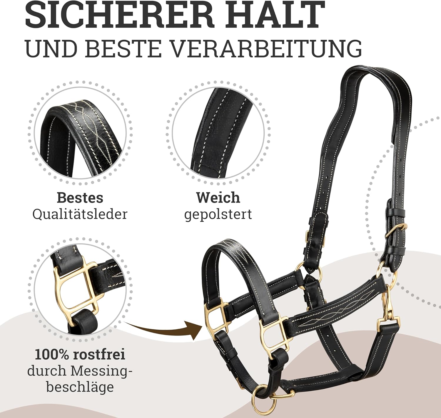 • ๐Ÿด ๐’๐“๐€๐๐ˆ๐‹ ๐”๐๐ƒ ๐’๐ˆ๐‚๐‡๐„๐‘ - Unser Esposita Lederhalfter Deluxe ist von hervorragender Qualitรคt und Verarbeitung! Bestes Leder, weiche Polsterung und hochwertige, massive und absolut rostfreie Messingschnallen