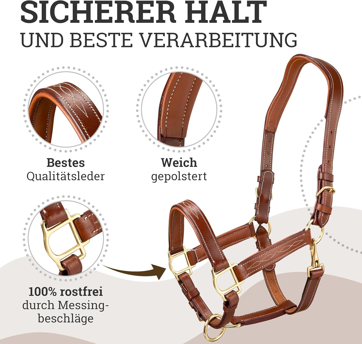 - ๐ด ๐๐๐๐๐๐ ๐๐๐๐๐๐๐๐๐ ๐๐๐ - Unser Lederhalfter besticht nicht nur optischsch sondern auch mit der besten Passform: Das Genickstรผck ist anatomisch geschnitten und weich gepolstert um den bestmรถglichen