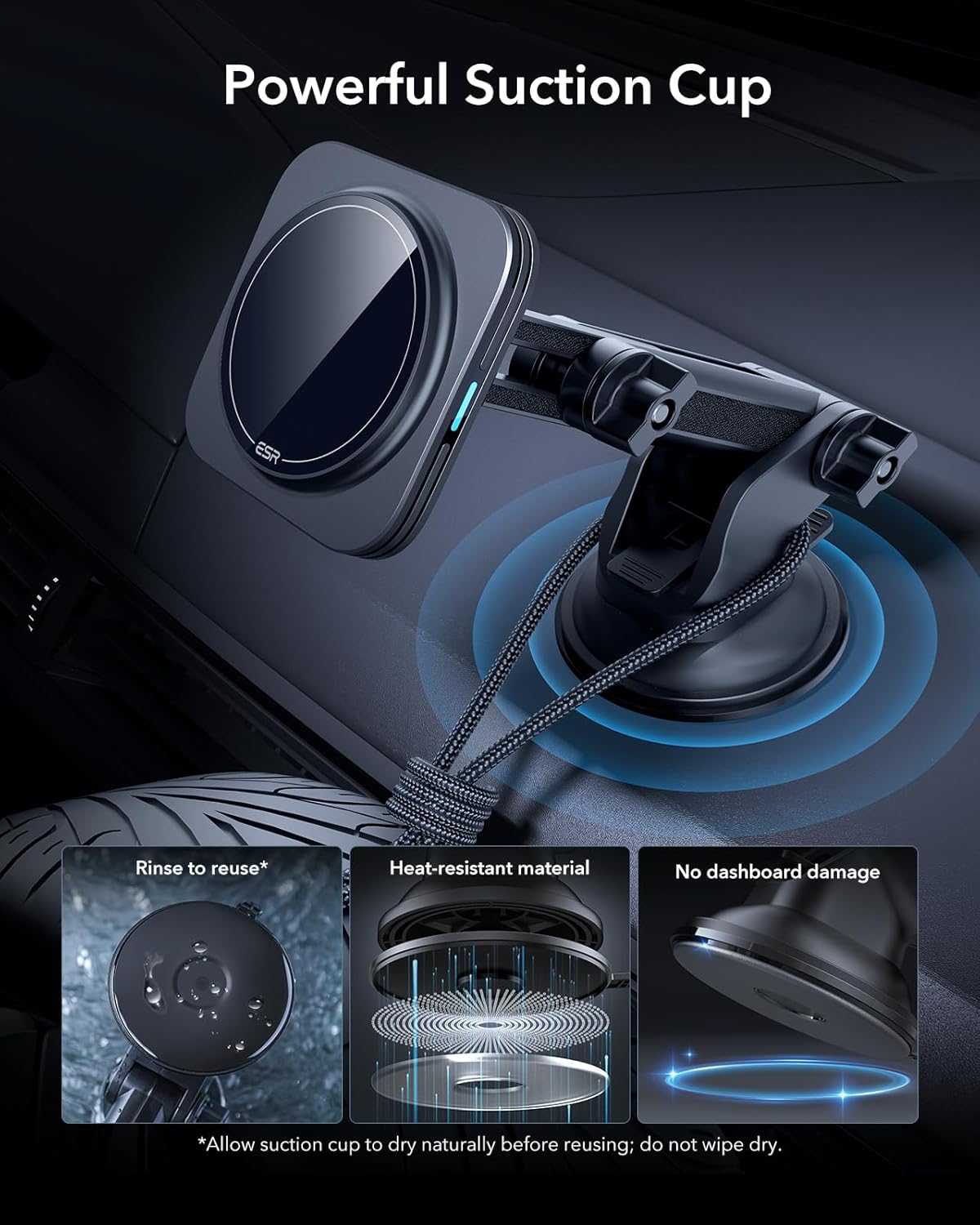 - Befestigung nach Wunsch: Sichere Befestigung am Dashboard oder an der Windschutzscheibe mit einem wiederverwendbaren Saugnapf und einem frei einstellbaren Kugelgelenk, mit dem du den bequemsten Winkel finden kannst