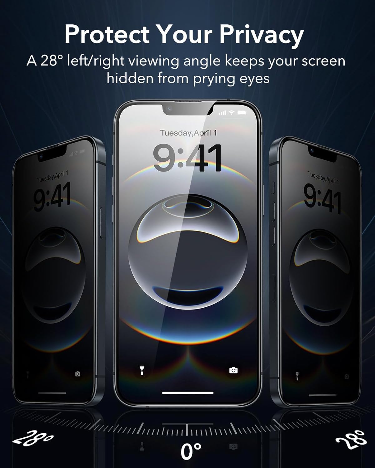 - Starker Sichtschutz: Der fortschrittliche Sichtschutzfilter blockiert die Betrachtung aus jedem Blickwinkel von mehr als 28°, sodass der Displayinhalt deines iPhone 15 nur für deine Augen sichtbar ist