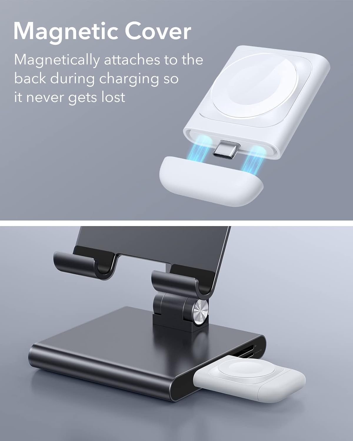 - Magnetische Ausrichtung: Eingebaute Magnete richten deine Watch sofort auf dem Ladegerät aus, um ein einfacheres und schnelleres kabelloses Laden zu ermöglichen