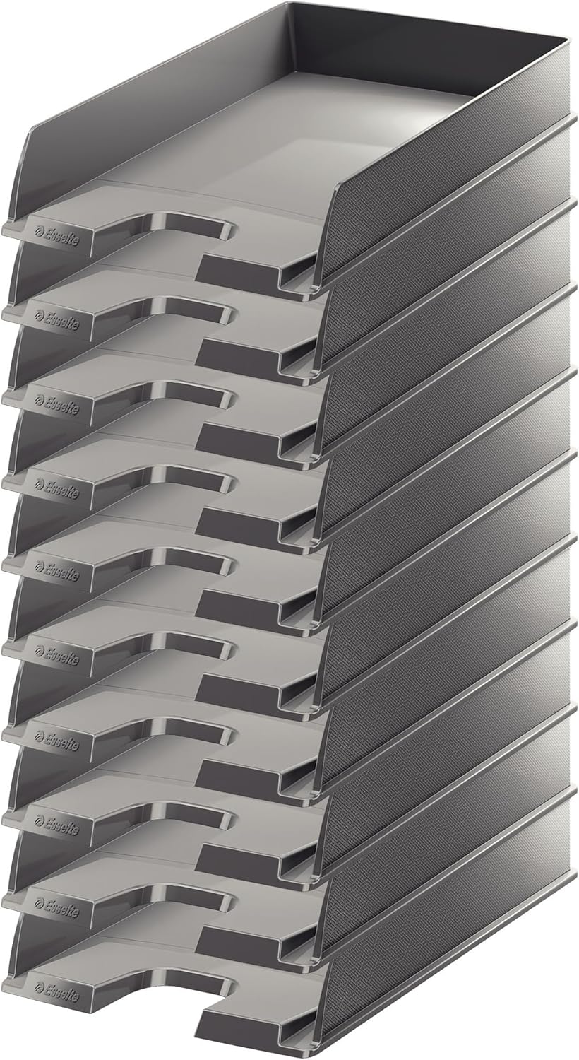 - Für eine übersichtliche Organisation senkrecht oder in drei verschiedenen Positionen versetzt stapelbar