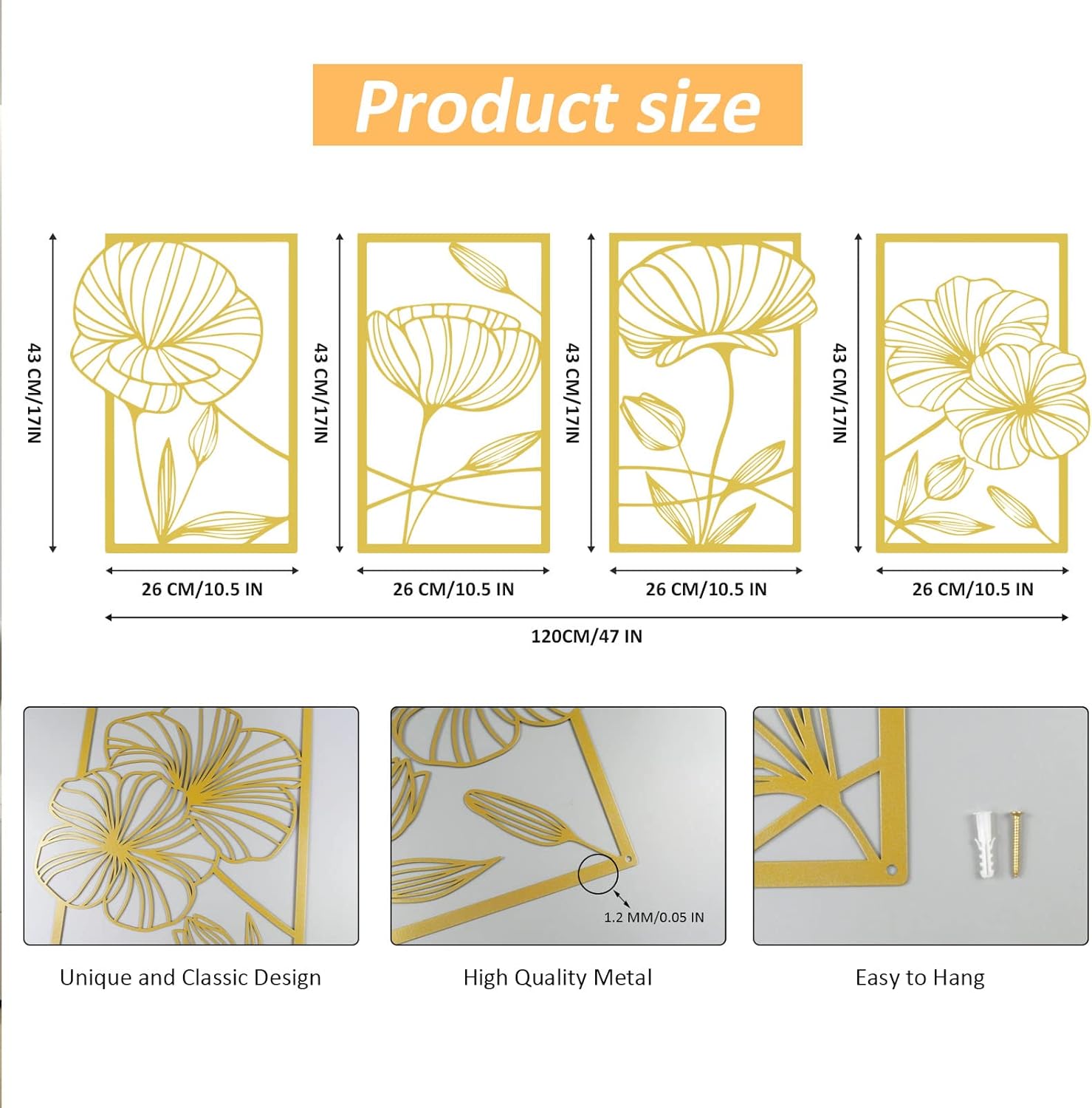 - Klassisches und exquisites Design: Die Metall-Wanddekoration nimmt das minimalistische abstrakte Design an, leicht und elegant. Sie können verschiedene Farben entsprechend Ihrem Raumstil und Raum wählen.