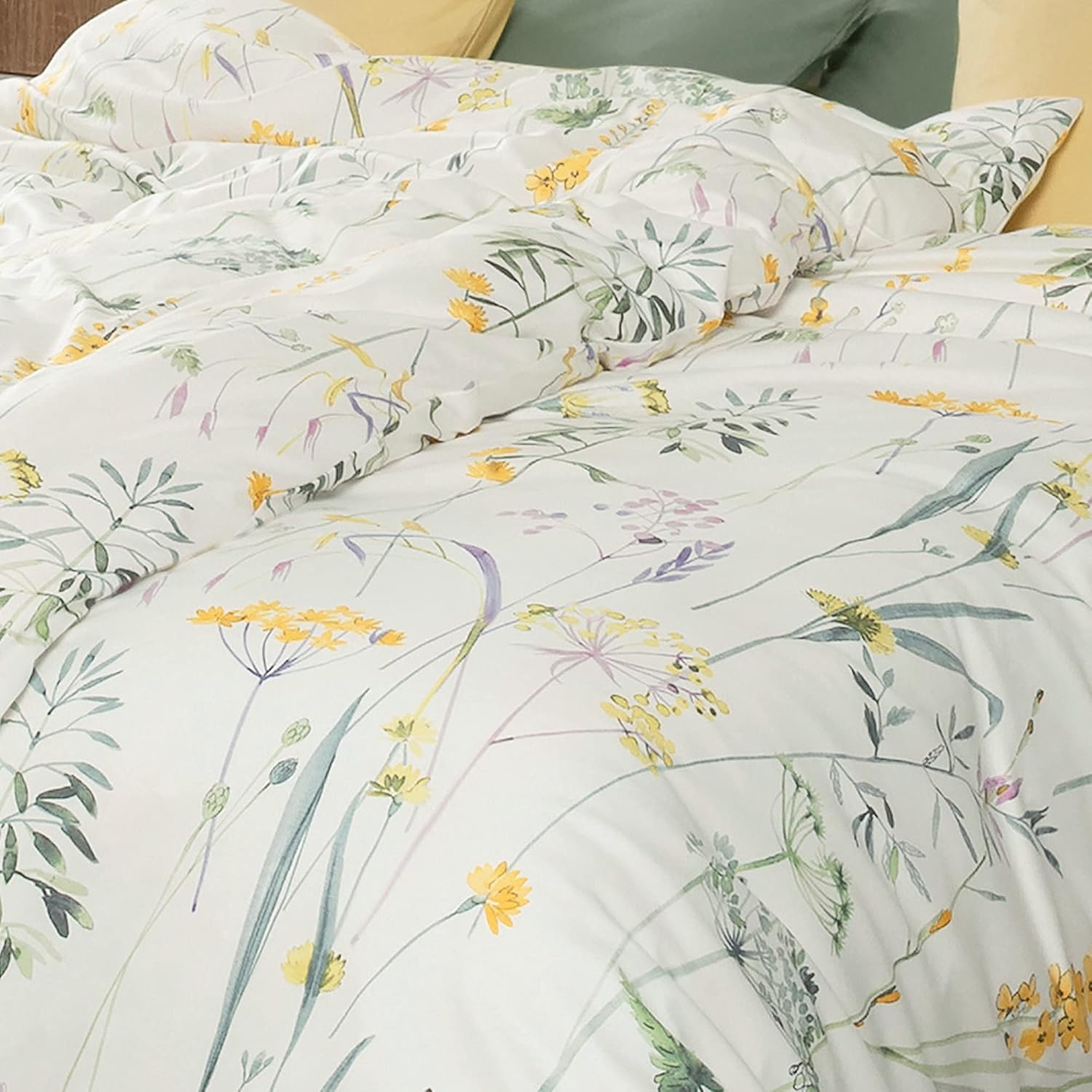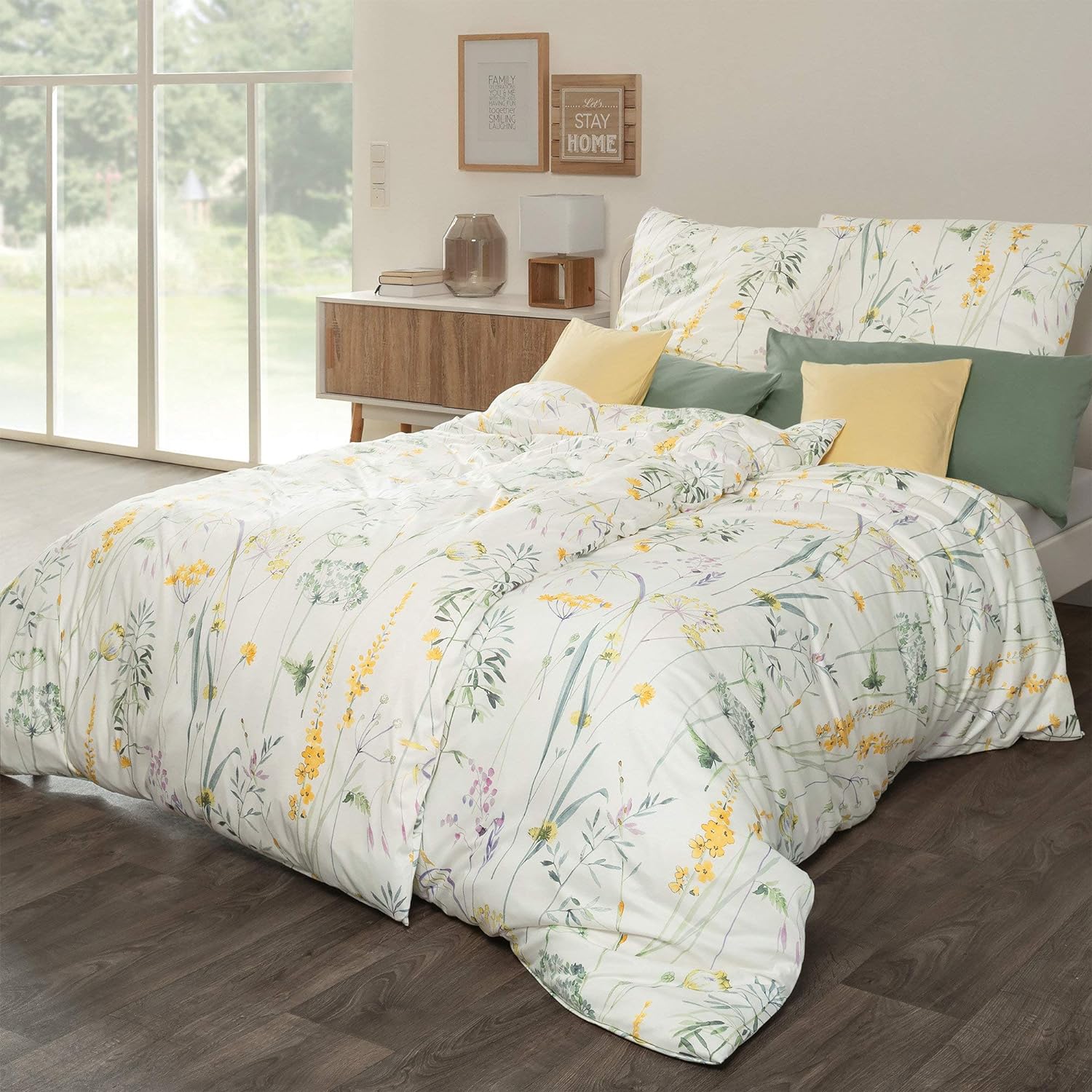 Variante: 1 Bettbezug 135 x 200 cm + 1 Kissenbezug 80 x 80 Lindgrün-apricot-wollweiss