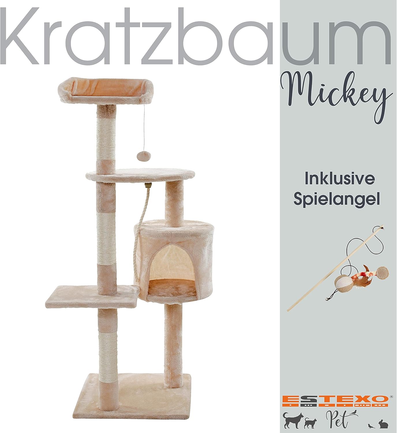 - Stabile Bodenplatte aus Holz; Inklusive Katzen Spielzeug