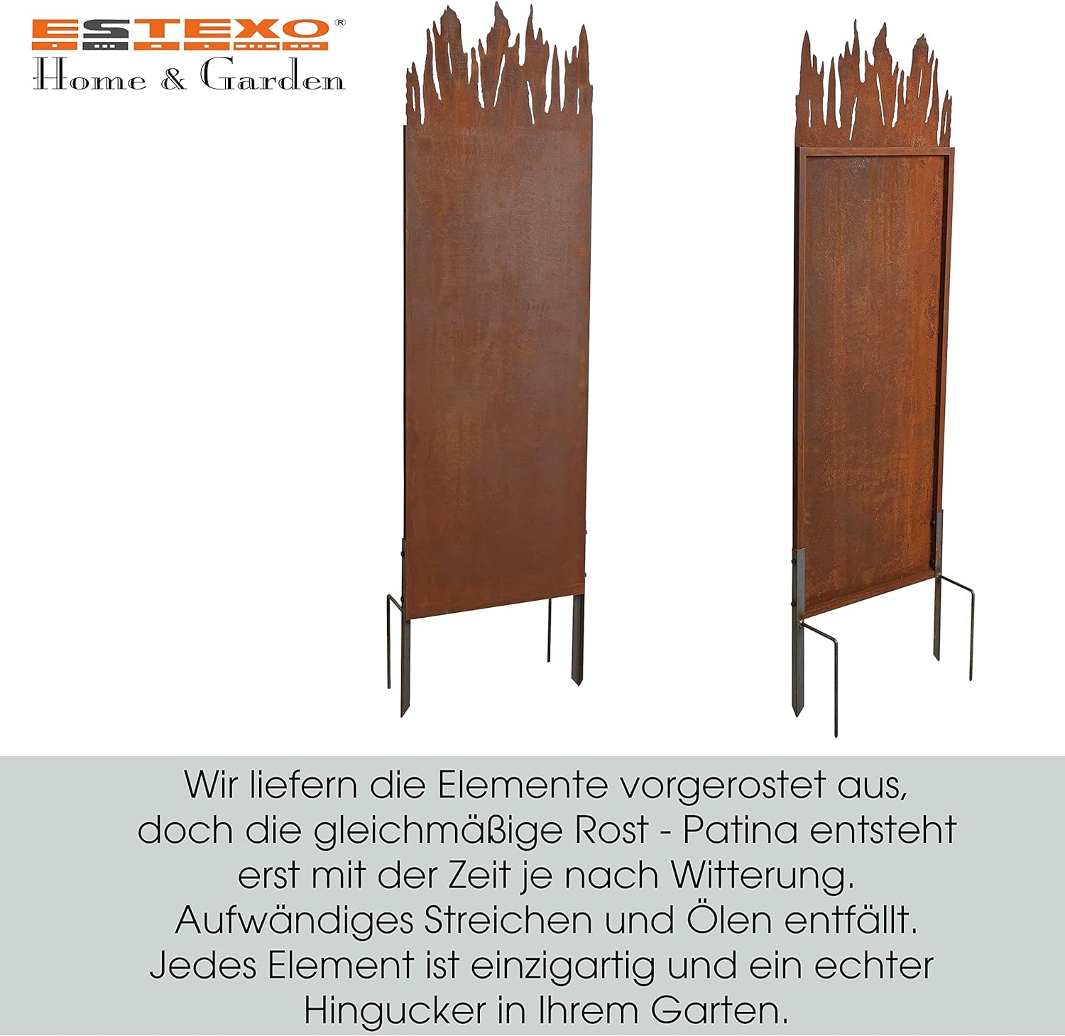 - Jedes Element ist einzigartig da es seine individuelle Rost Patina erzeugt.