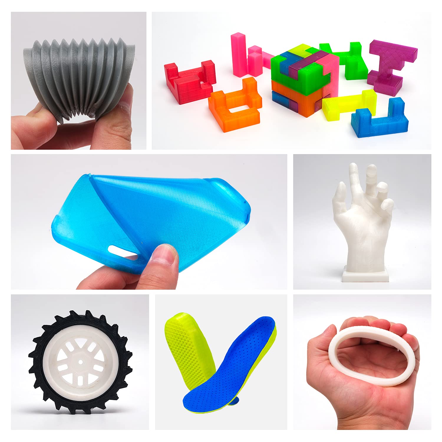 - 【Flexibles TPU 95A】Härte Shore 95A. Starke Flexibilität. Hohe Belastbarkeit. Hohe Transparenz. Hohe mechanische Festigkeit. Verschleissfestigkeit. Reissfestigkeit. Beugungswiderstand. Beständig gegen Öl, Lösungsmittel und Kratzer.