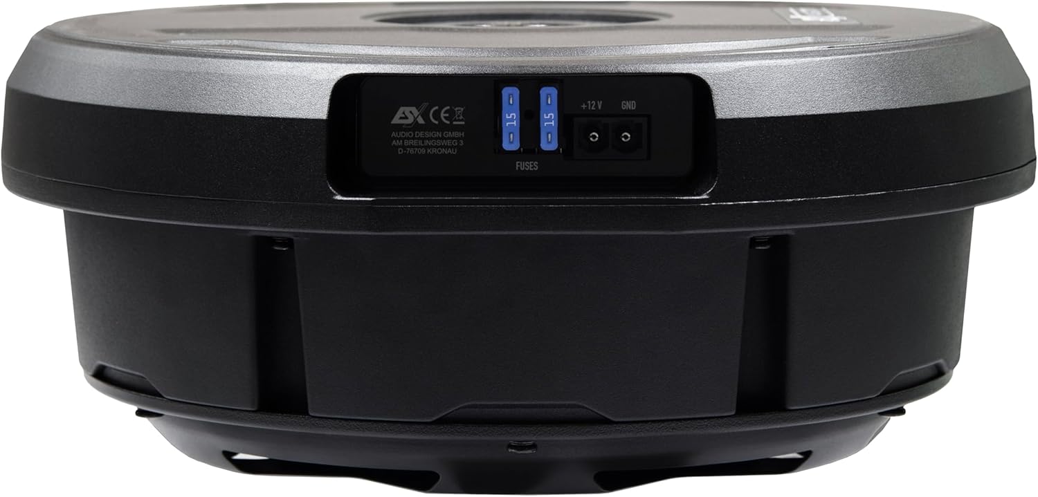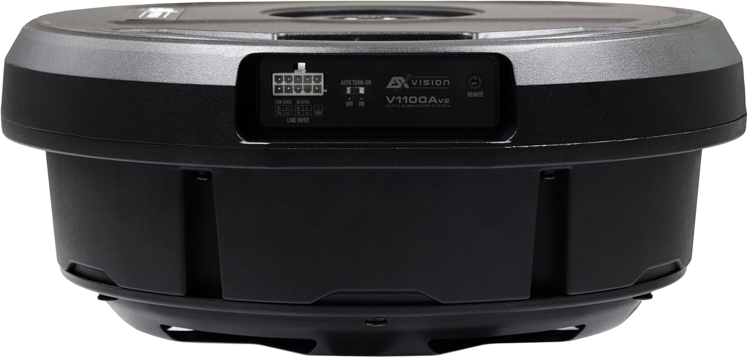 - ESX V1100Av2 - 28cm (11") AKTIV Bass für Reserverad-Mulde mit massivem Aluminium-Gehäuse | Class-A/B Power mit 300 Watt und kompakter Kabel-Fernbedienung