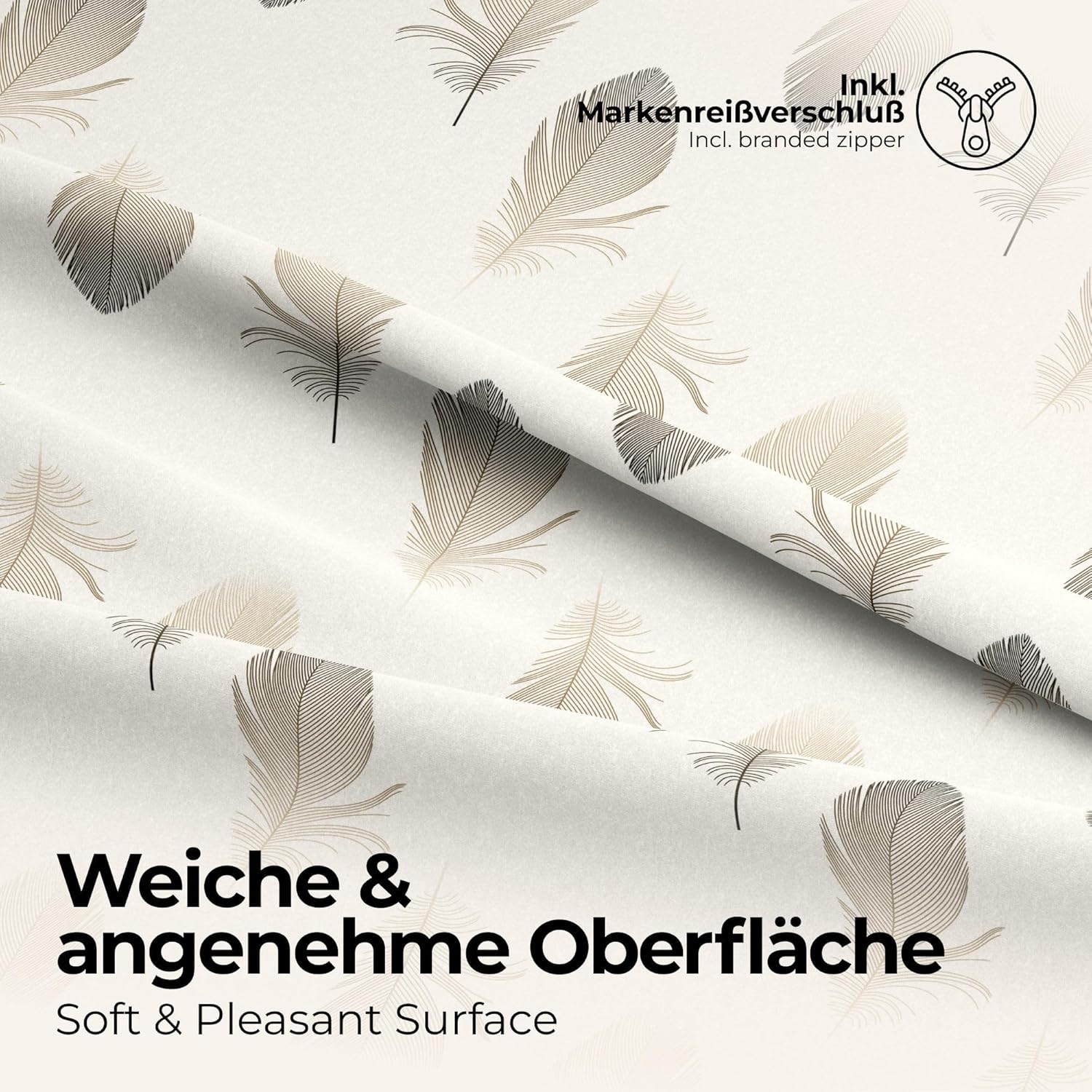 - Himmlischer Schlaf: Das exklusive etérea Design der Bettwäsche Federn präsentiert sich auf einem weichen Renforcé aus 100% Baumwolle mit Soft Touch Veredlung und Reissverschluss. Die sanften braun beigen Farbtöne der Federn bieten einen schönen