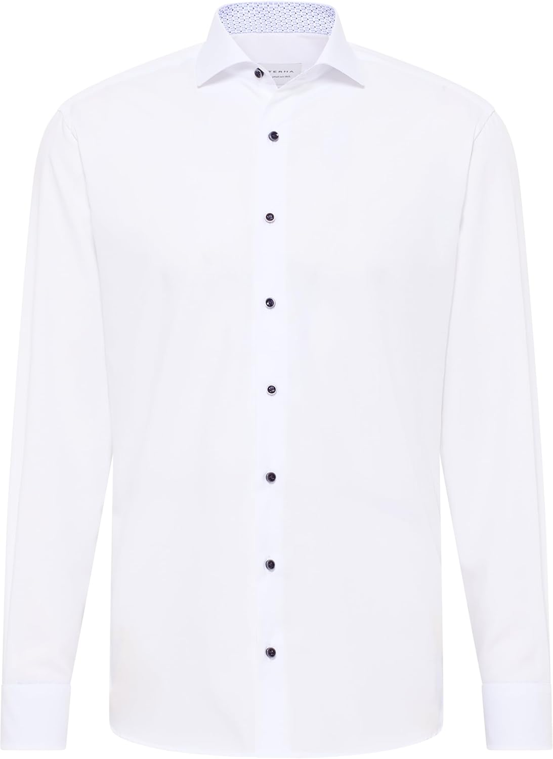 - ETERNA Modern Fit Hemd Langarm Langarmhemd Herrenhemd Businesshemd Baumwollhemd tailliert geschnitten mit Hemdtasche in weiss