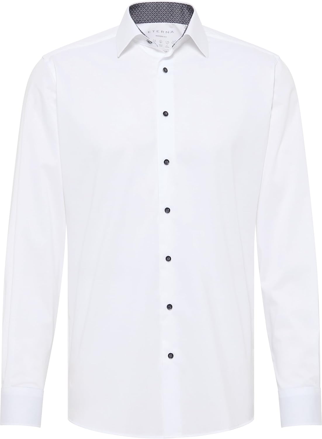 - ETERNA Modern Fit Hemd Langarm New Kent Kragen Performance Shirt Twill bügelfrei Patch Uni weiss