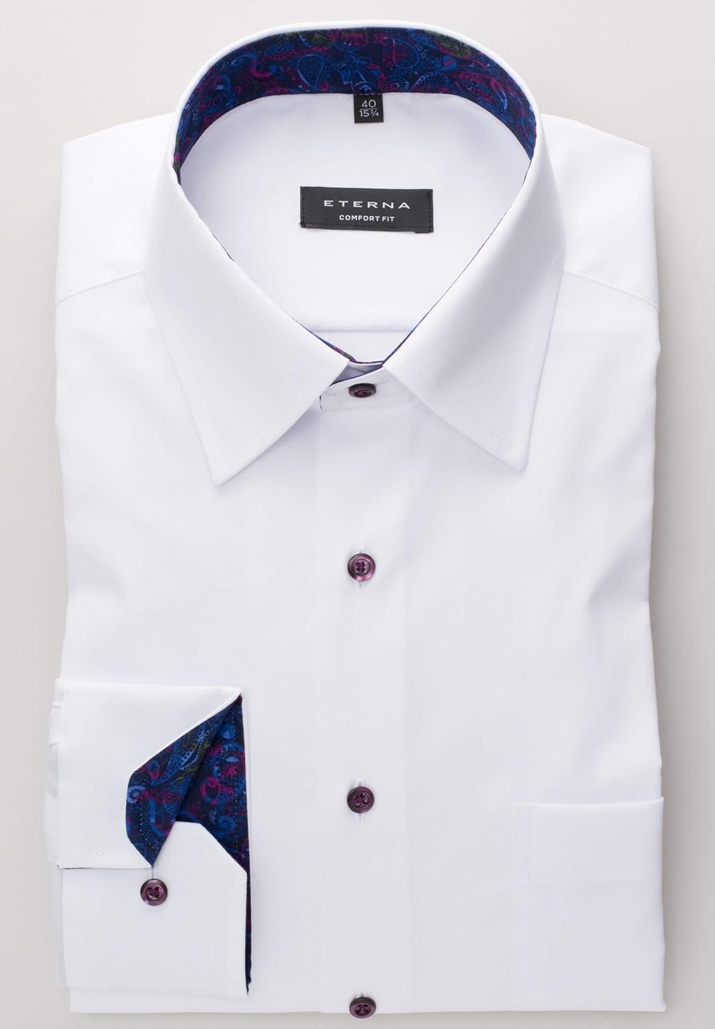 eterna Langarm Hemd Comfort FIT Pinpoint unifarben W40 Langarm Weiss