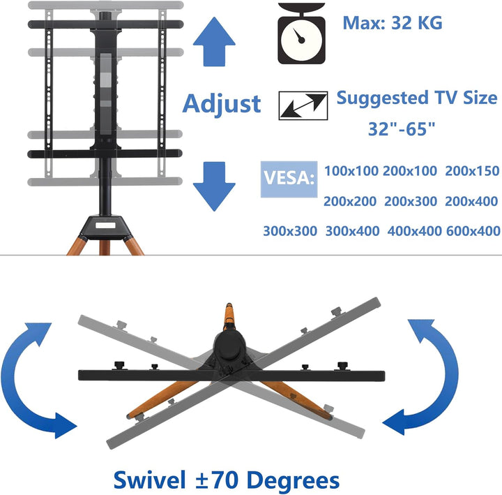 - 【TV-Ständer】 ETHU Stativ Staffelei TV-Ständer ist ein Ersatz für den typischen an der Wand montierten TV-Ständer in Ihrem Wohnzimmer, dieser Ständer wäre gross genug, um einen Fernseher zu unterstützen und Stauraum für eine DVD-Player-TV-Box,