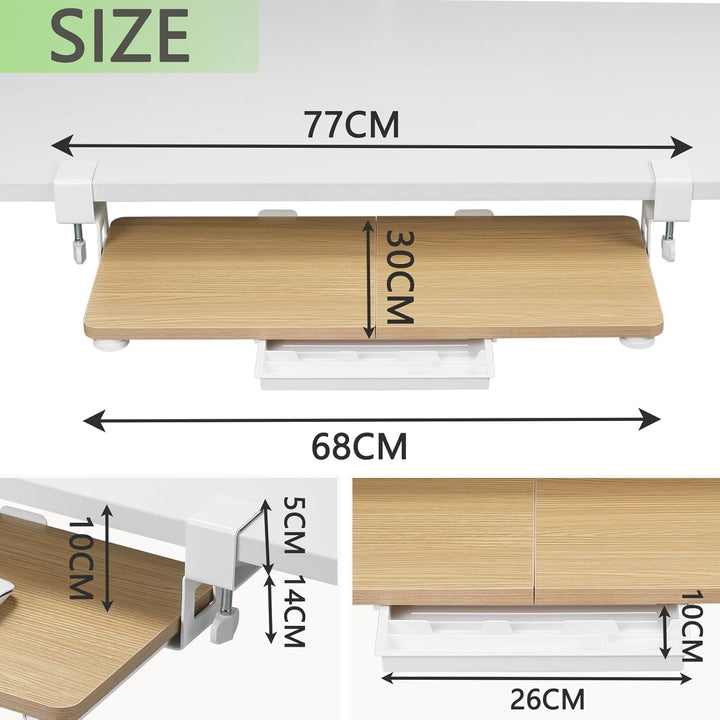 - Geräumiger 68 x 30 cm Arbeitsplatz: Diese Tastaturablage unter dem Schreibtisch bietet eine grosszügige 68 x 30 cm grosse Oberfläche, die als integrierte Tastaturschublade fungiert, die für Tastaturen, Mäuse, Telefone und Notebooks in voller Grösse