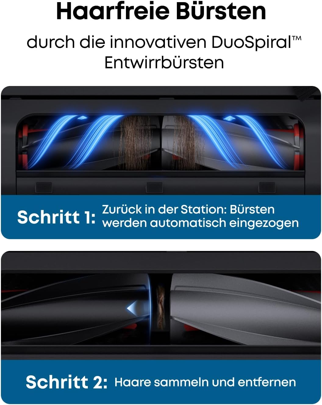 - Haarfreie Bürsten durch die innovativen DuoSpiral Entwirrbürsten:Nie wieder aufwendiges Nachreinigen von Hand! Die DuoSpiral Bürsten verhindern Haarverwicklungen und reduzieren den Wartungsaufwand – für ein rundum müheloses Reinigungserlebnis.