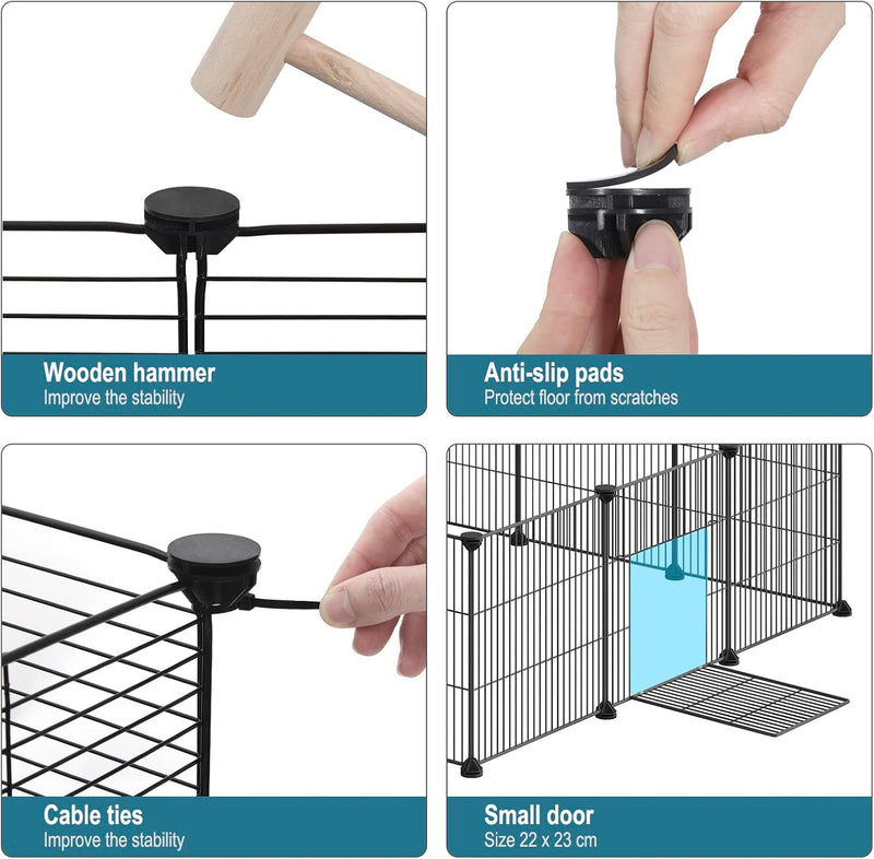 • Freigehege aus Metallgitter: Mit einem Gitterabstand von 1,5 cm eignet sich dieses Gittergehege für Kleintiere wie Hamster, Meerschweinchen, Chinchillas, Igel, Frettchen, Kaninchen, Zwergkaninchen, Kätzchen, Welpen usw. Das Gitter bietet eine freie