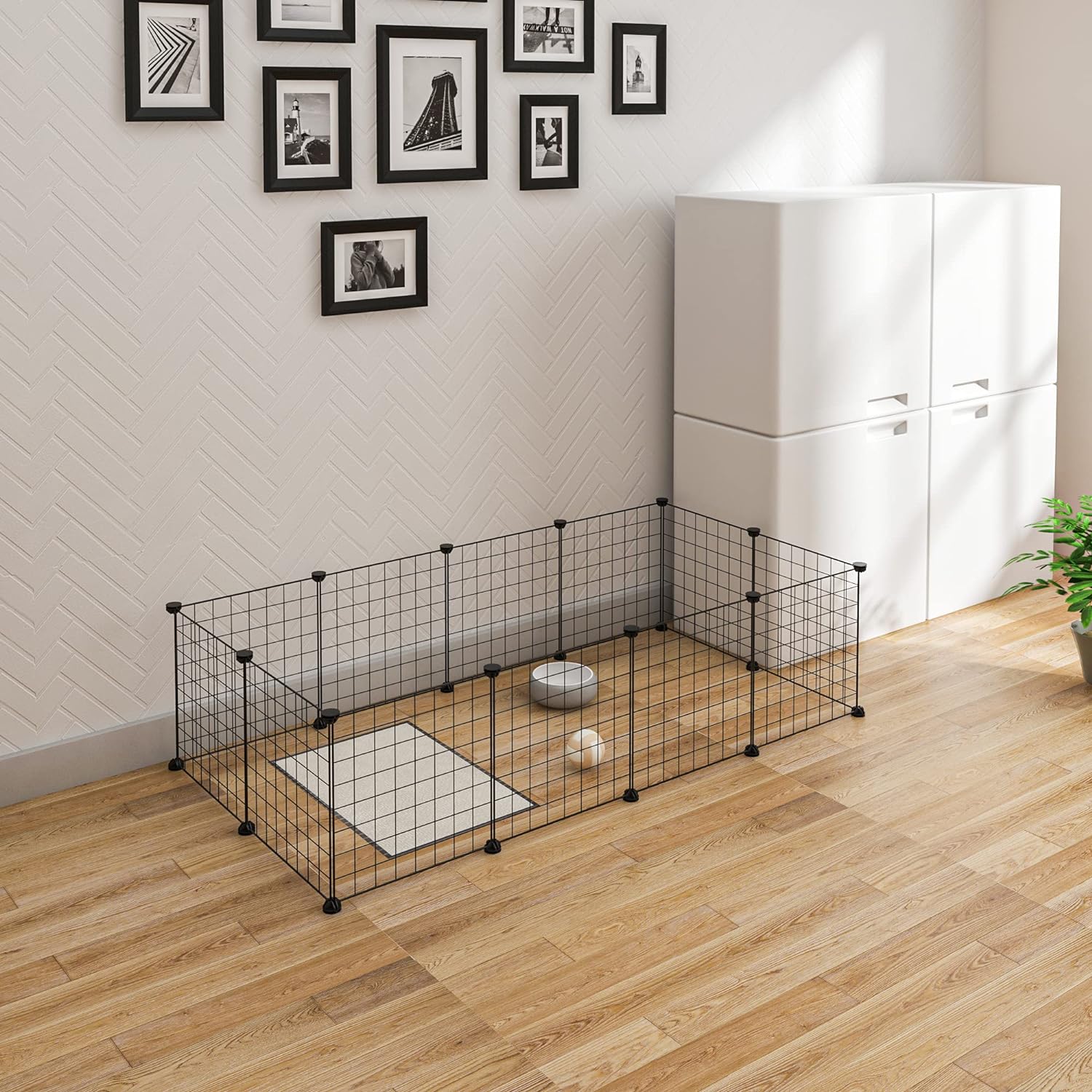 • Auslaufbereich DIY: In einem Set sind 12 Drahtplatten (35x35 cm) und 28 Verbinder enthalten. Sie können einen Welpenauslauf, einen Katzenkäfig oder einen Hasenzau in verschiedenen Formen oder Grössen mit einem oder mehreren Sets im Innenraum machen