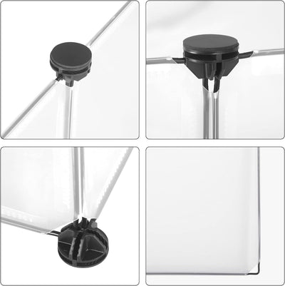 - Verstärktes Hasengehege: Die Struktur wird verstärkt, indem Sie mit dem mitgelieferten Hammer auf die Anschlüsse klopfen und mit Kabelbindern benachbarte Metallrahmen binden. Die Anti-Rutsch-Aufkleber verbessern die Stabilität und schützen Boden